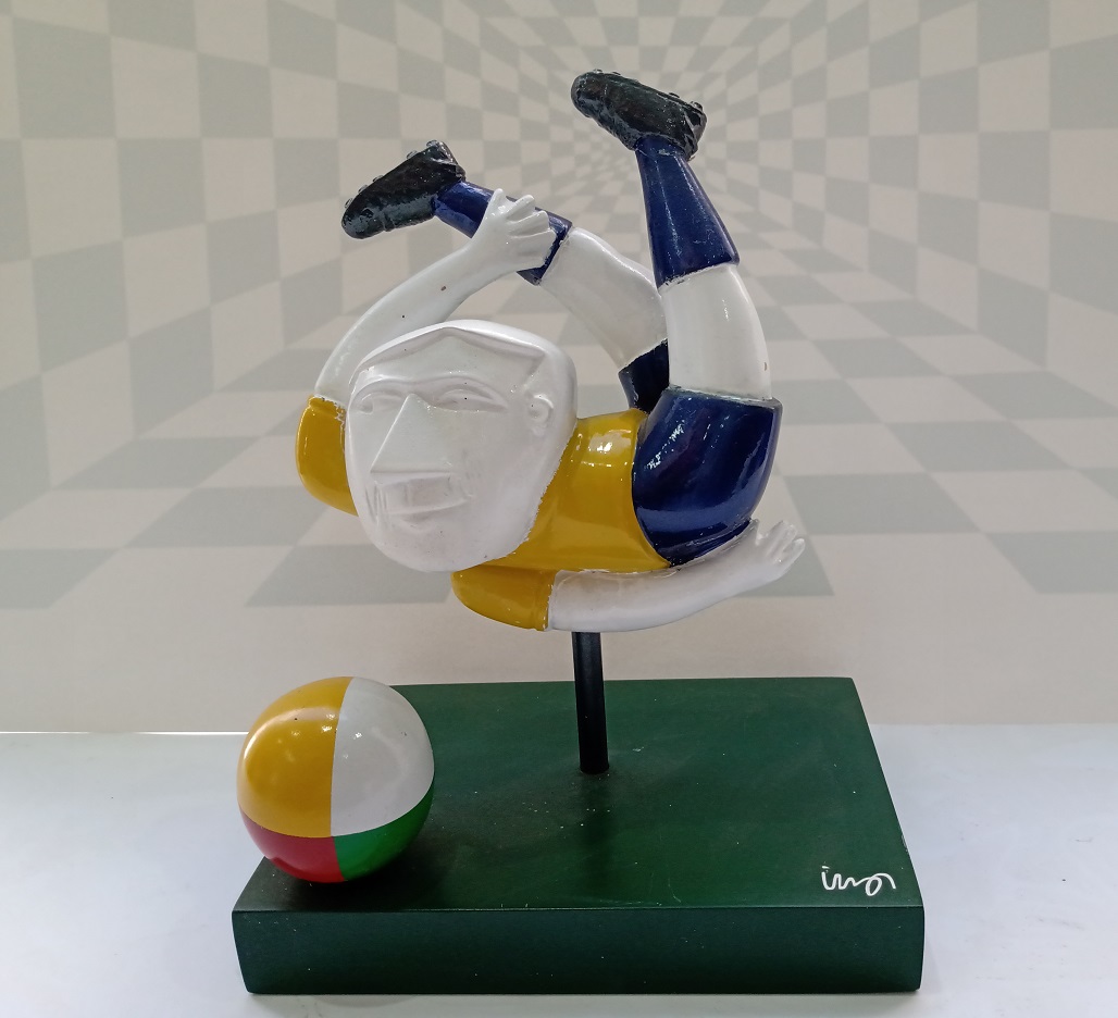 Inos Corradin - Equilibrista - Escultura em Terracota - 28cm Alt - Base em Madeira