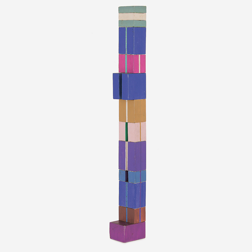 Ione Saldanha (Alegrete RS 1919 - Rio de Janeiro RJ 2001). Pintora, escultora e desenhista. Realiza seus primeiros estudos no Rio de Janeiro, no ateliê do pintor Pedro Luiz Correia de Araújo (1874 - 1955), em 1948. Entra em contato com os artistas Arpad Szenes (1897 - 1985) e Vieira da Silva (1908 - 1992). Viaja para a Europa em 1951 e estuda a técnica de afresco em Paris, na Académie Julian, e em Florença, Itália. Inicialmente produz obras figurativas, como cenas cotidianas e retratos, e pintura de casarios, em que enfatiza a geometria. Posteriormente, sua produção adquire um caráter abstrato. No fim da década de 1960, passa a utilizar novos suportes, abandonando a superfície bidimensional, e pinta sobre ripas, carretéis (bobinas de madeira para cabos elétricos) e bambus. Em 1969, recebe o prêmio de viagem ao exterior no 7º Resumo de Arte do Jornal do Brasil, e vai para os Estados Unidos e Europa. Participa de várias edições da Bienal Internacional de São Paulo, com prêmio aquisição em 1967, e sala especial em 1975 e 1979. Apresenta a mostra Resumo de 45 Anos de Pintura, nas galerias A. M. Niemeyer, Paulo Klabin e Saramenha, no Rio de Janeiro, em 1988. Em 2001, é realizada a retrospectiva Ione Saldanha e a Simplicidade da Cor, no Museu de Arte Contemporânea de Niterói - MAC/Niterói.