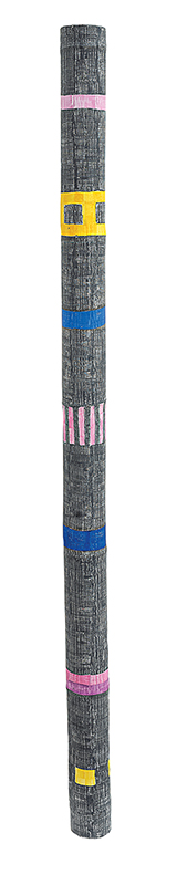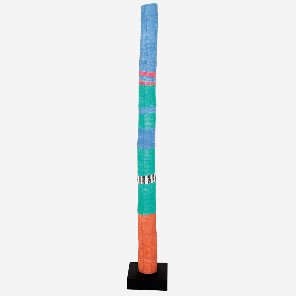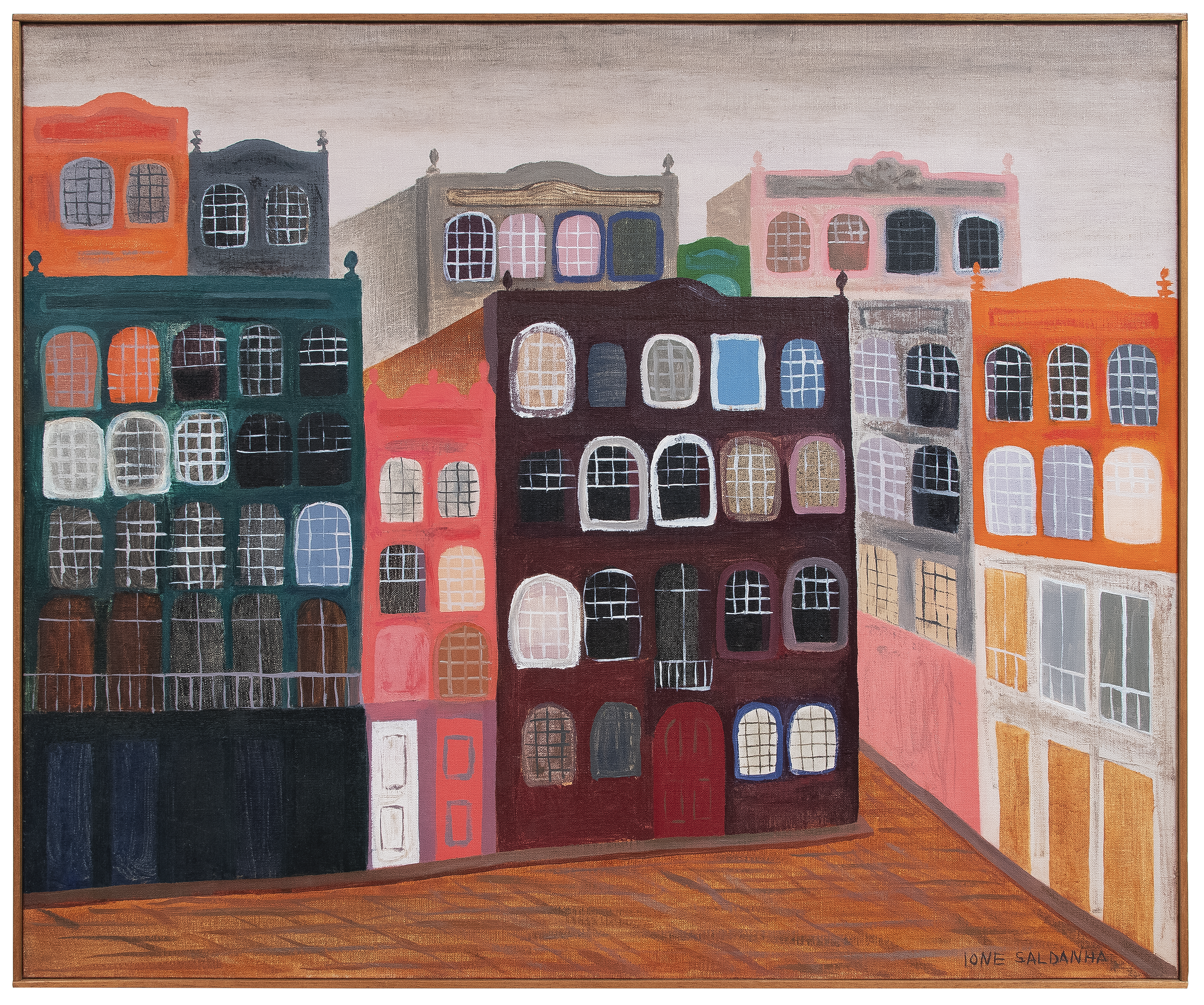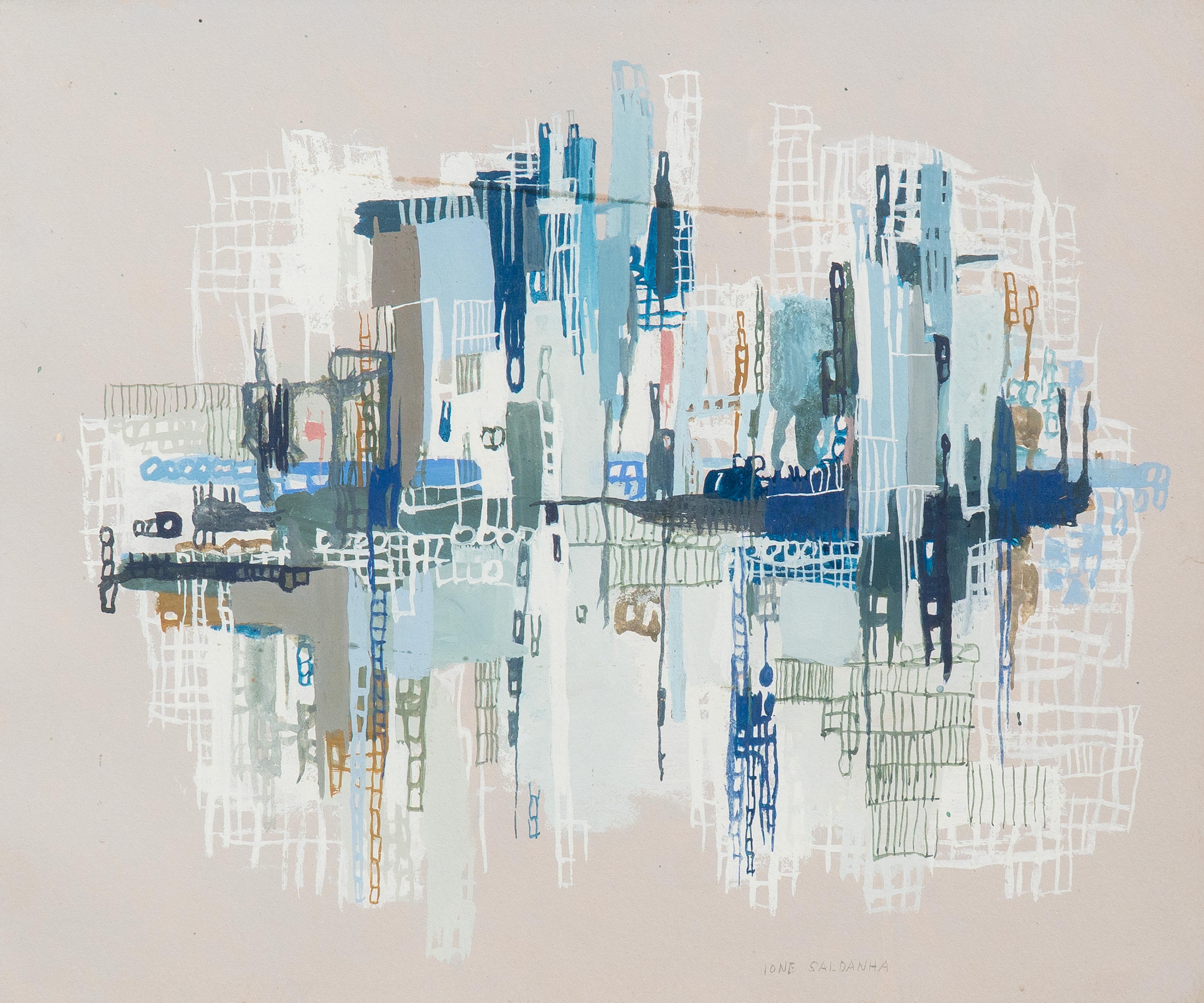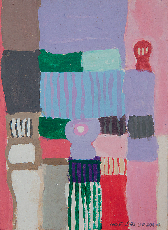 Ione Saldanha (Alegrete RS 1919 - Rio de Janeiro RJ 2001). Pintora, escultora e desenhista. Realiza seus primeiros estudos no Rio de Janeiro, no ateliê do pintor Pedro Luiz Correia de Araújo (1874 - 1955), em 1948. Entra em contato com os artistas Arpad Szenes (1897 - 1985) e Vieira da Silva (1908 - 1992). Viaja para a Europa em 1951 e estuda a técnica de afresco em Paris, na Académie Julian, e em Florença, Itália. Inicialmente produz obras figurativas, como cenas cotidianas e retratos, e pintura de casarios, em que enfatiza a geometria. Posteriormente, sua produção adquire um caráter abstrato. No fim da década de 1960, passa a utilizar novos suportes, abandonando a superfície bidimensional, e pinta sobre ripas, carretéis (bobinas de madeira para cabos elétricos) e bambus. Em 1969, recebe o prêmio de viagem ao exterior no 7º Resumo de Arte do Jornal do Brasil, e vai para os Estados Unidos e Europa. Participa de várias edições da Bienal Internacional de São Paulo, com prêmio aquisição em 1967, e sala especial em 1975 e 1979. Apresenta a mostra Resumo de 45 Anos de Pintura, nas galerias A. M. Niemeyer, Paulo Klabin e Saramenha, no Rio de Janeiro, em 1988. Em 2001, é realizada a retrospectiva Ione Saldanha e a Simplicidade da Cor, no Museu de Arte Contemporânea de Niterói - MAC/Niterói.