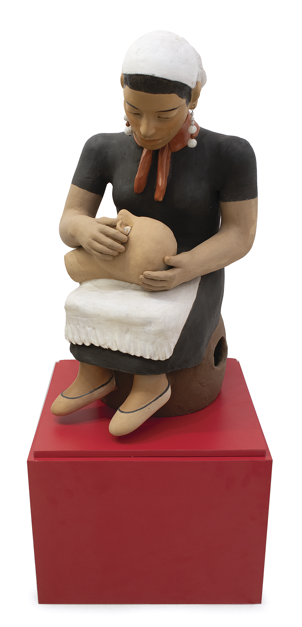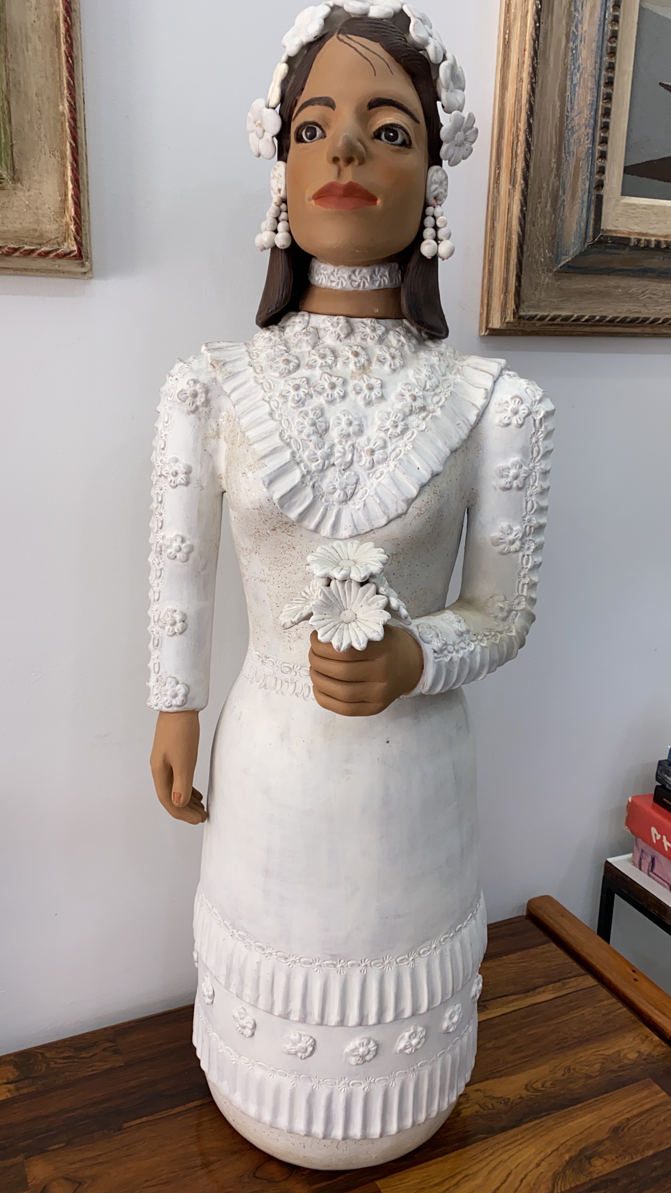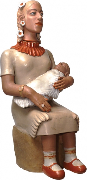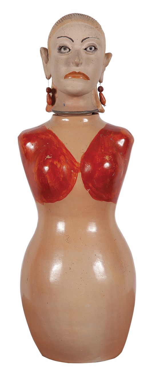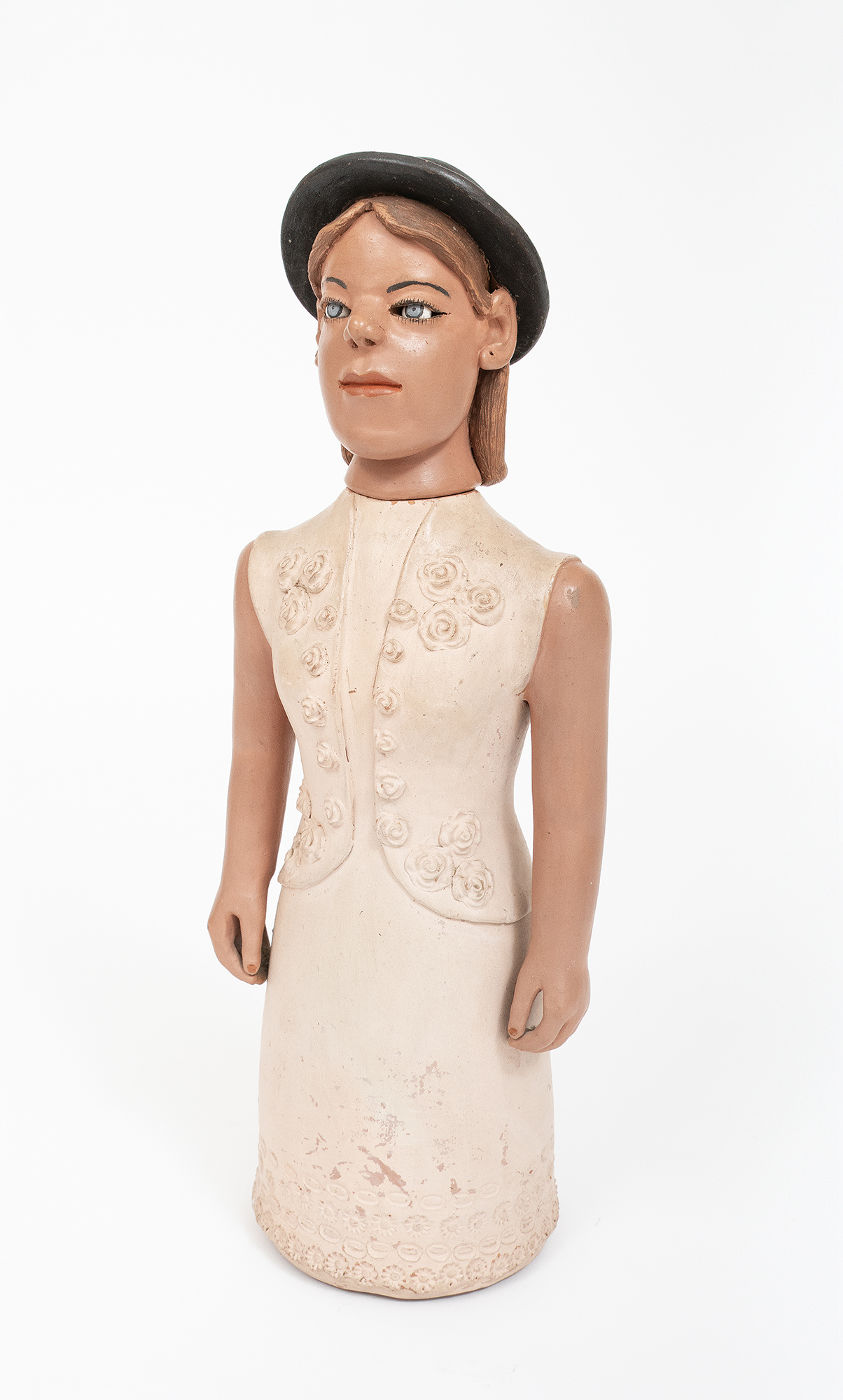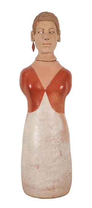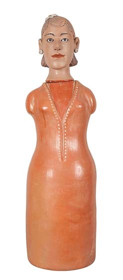 ISABEL MENDES DA CUNHA -Boneca - Escultura em Cêramica Pintada - Ass.loc. Santana de Araçuaí - MG - 69 x 25 x 20 cm.