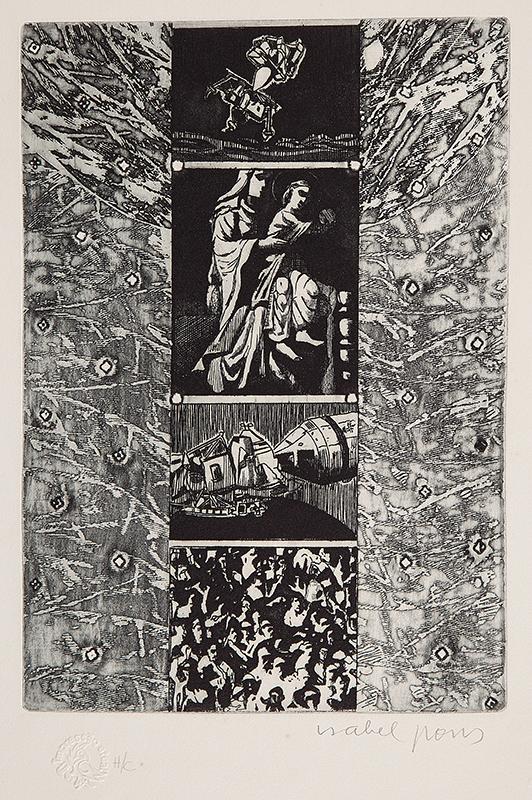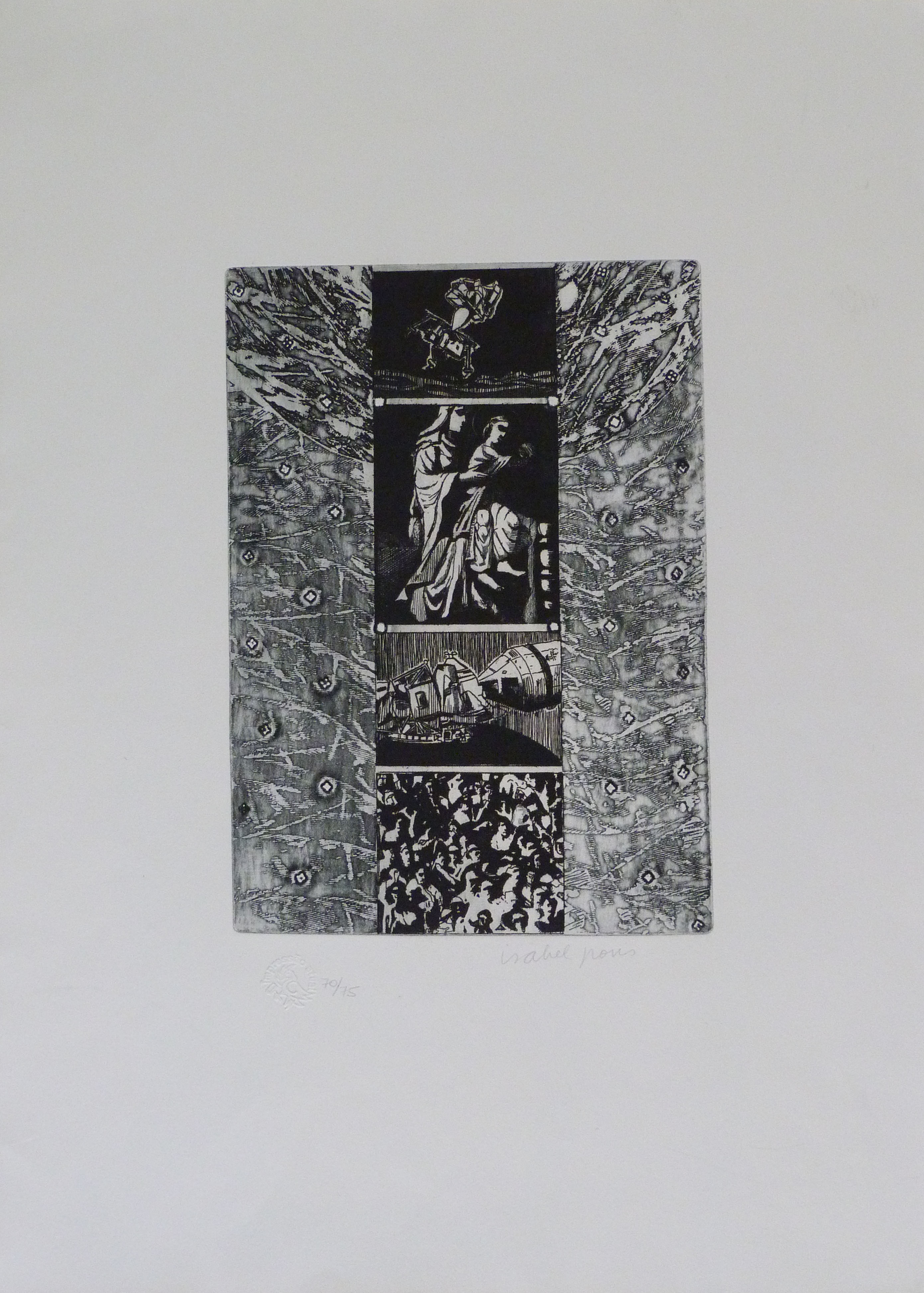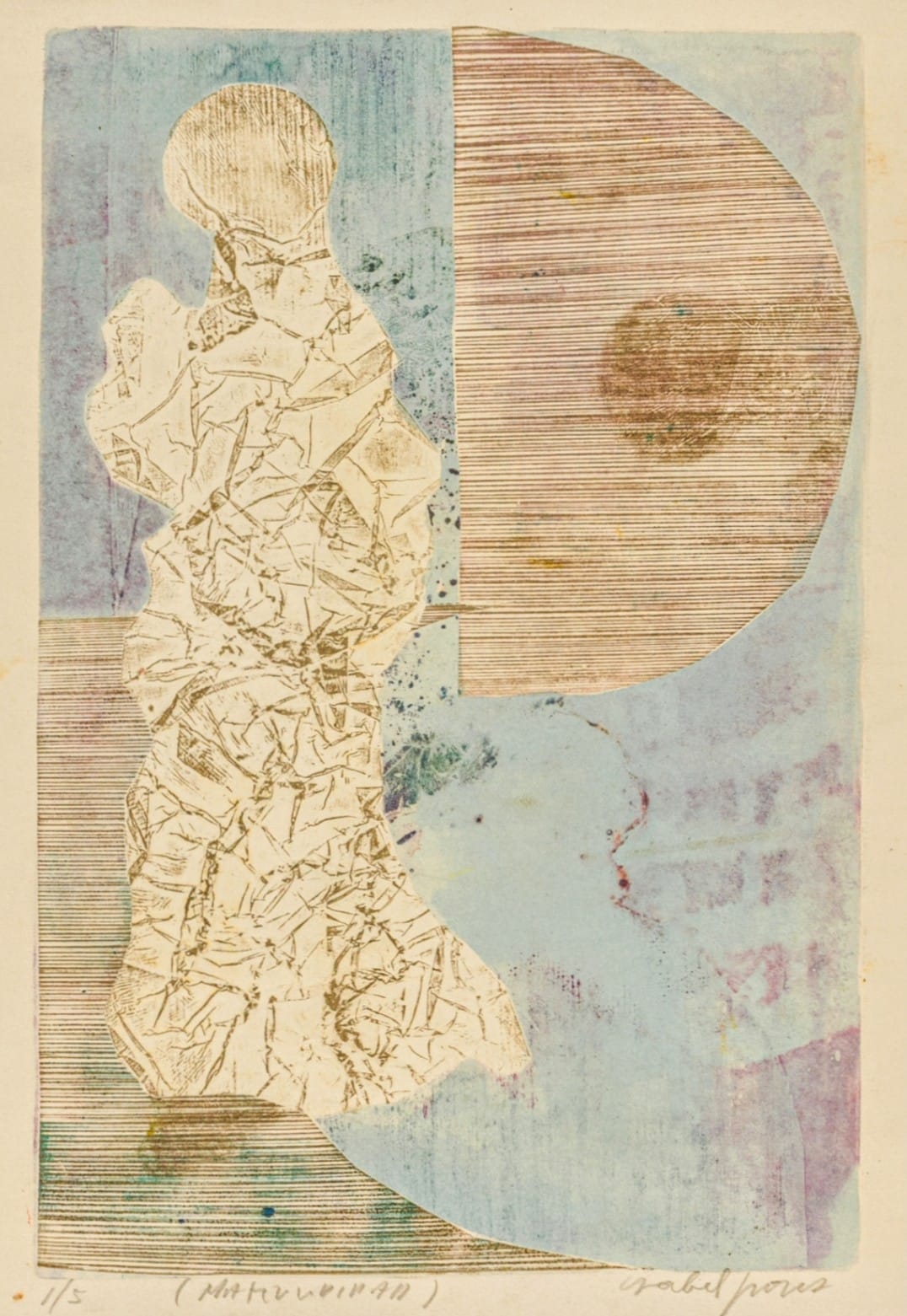 Isabel Pons Iranzo (Barcelona, Espanha 1912 - Rio de Janeiro RJ 2002). Gravadora, desenhista, ilustradora, pintora, professora e figurinista. Faz cursos de pintura e desenho na Escola Nacional de Belas Artes, em Barcelona, entre 1925 e 1930. No mesmo período estuda na Escola Industrial de Sabadell, com Juan Vila-Cinca e A. Vila Arrufat. Entre os anos 1930 e 1940, freqüenta o ateliê do pintor Carlos Vazquez e o Real Círculo Artístico de Barcelona. Por volta de 1935, faz ilustrações para livros do poeta espanhol Federico García Lorca (1898-1936). Muda-se para o Rio de Janeiro em 1945. Em 1957, leciona gravura na Escola de Artes Visuais do Parque Lage (EAV/Parque Lage). Naturaliza-se brasileira em 1958. Estuda com Rossini Perez (1932) e Johnny Friedlaender (1912-1992) no Ateliê de Gravura do Museu de Arte Moderna do Rio de Janeiro (MAM/RJ), em 1959.