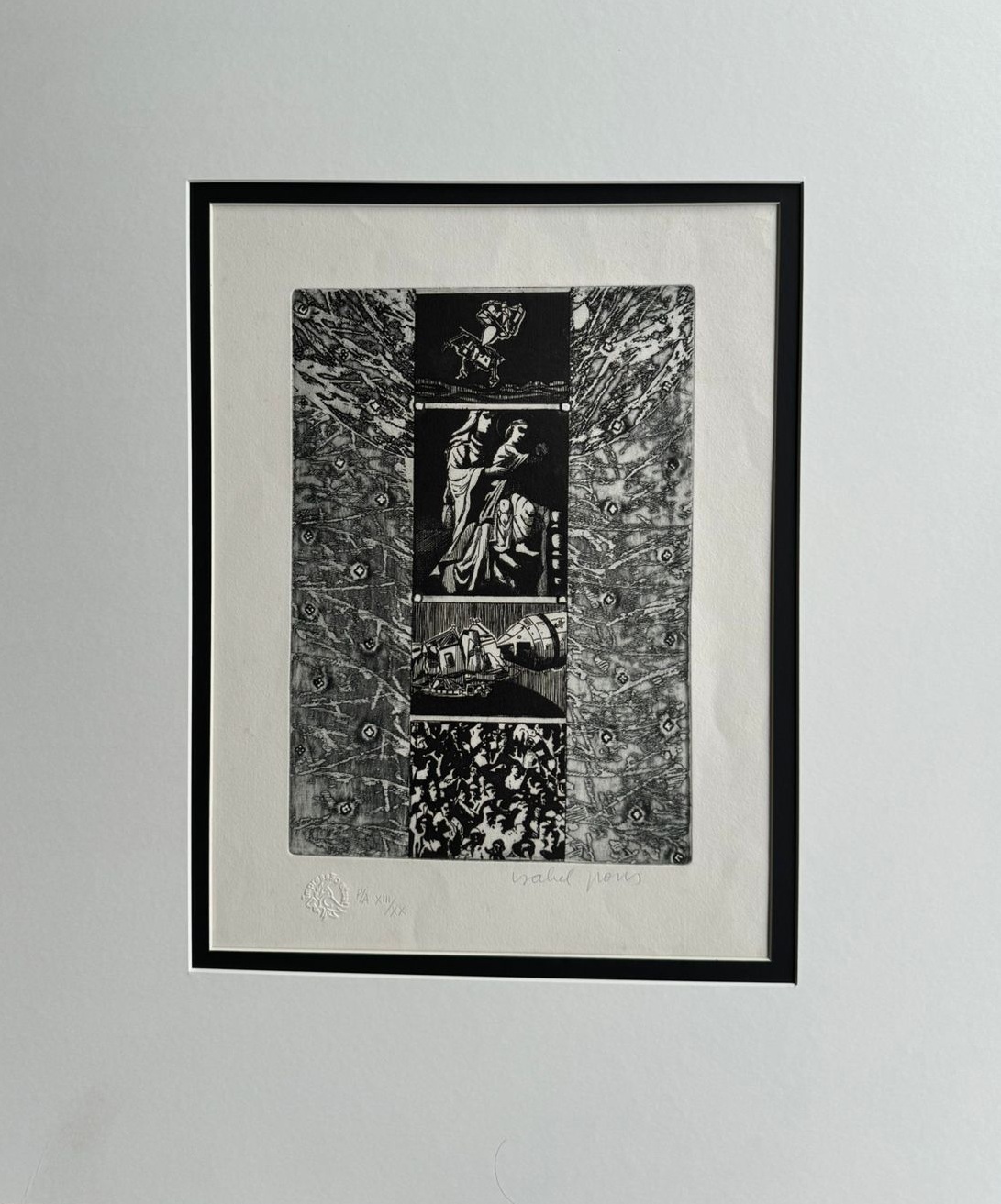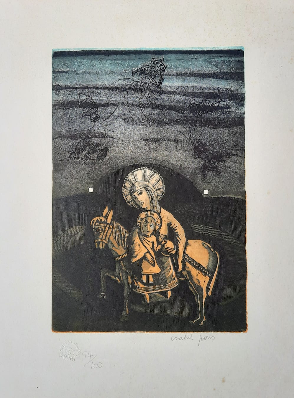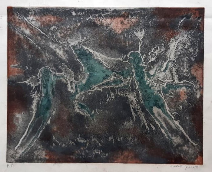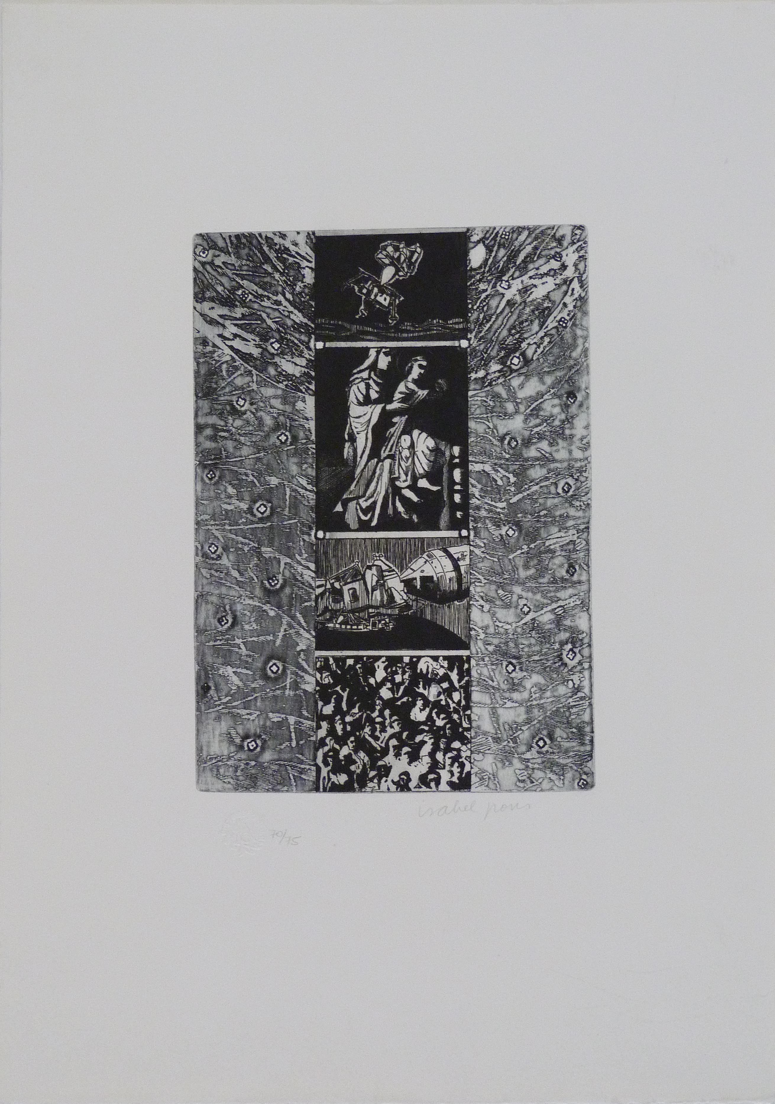Isabel Pons Iranzo (Barcelona, Espanha 1912 - Rio de Janeiro RJ 2002). Gravadora, desenhista, ilustradora, pintora, professora e figurinista. Faz cursos de pintura e desenho na Escola Nacional de Belas Artes, em Barcelona, entre 1925 e 1930. No mesmo período estuda na Escola Industrial de Sabadell, com Juan Vila-Cinca e A. Vila Arrufat. Entre os anos 1930 e 1940, freqüenta o ateliê do pintor Carlos Vazquez e o Real Círculo Artístico de Barcelona. Por volta de 1935, faz ilustrações para livros do poeta espanhol Federico García Lorca (1898-1936). Muda-se para o Rio de Janeiro em 1945. Em 1957, leciona gravura na Escola de Artes Visuais do Parque Lage (EAV/Parque Lage). Naturaliza-se brasileira em 1958. Estuda com Rossini Perez (1932) e Johnny Friedlaender (1912-1992) no Ateliê de Gravura do Museu de Arte Moderna do Rio de Janeiro (MAM/RJ), em 1959.