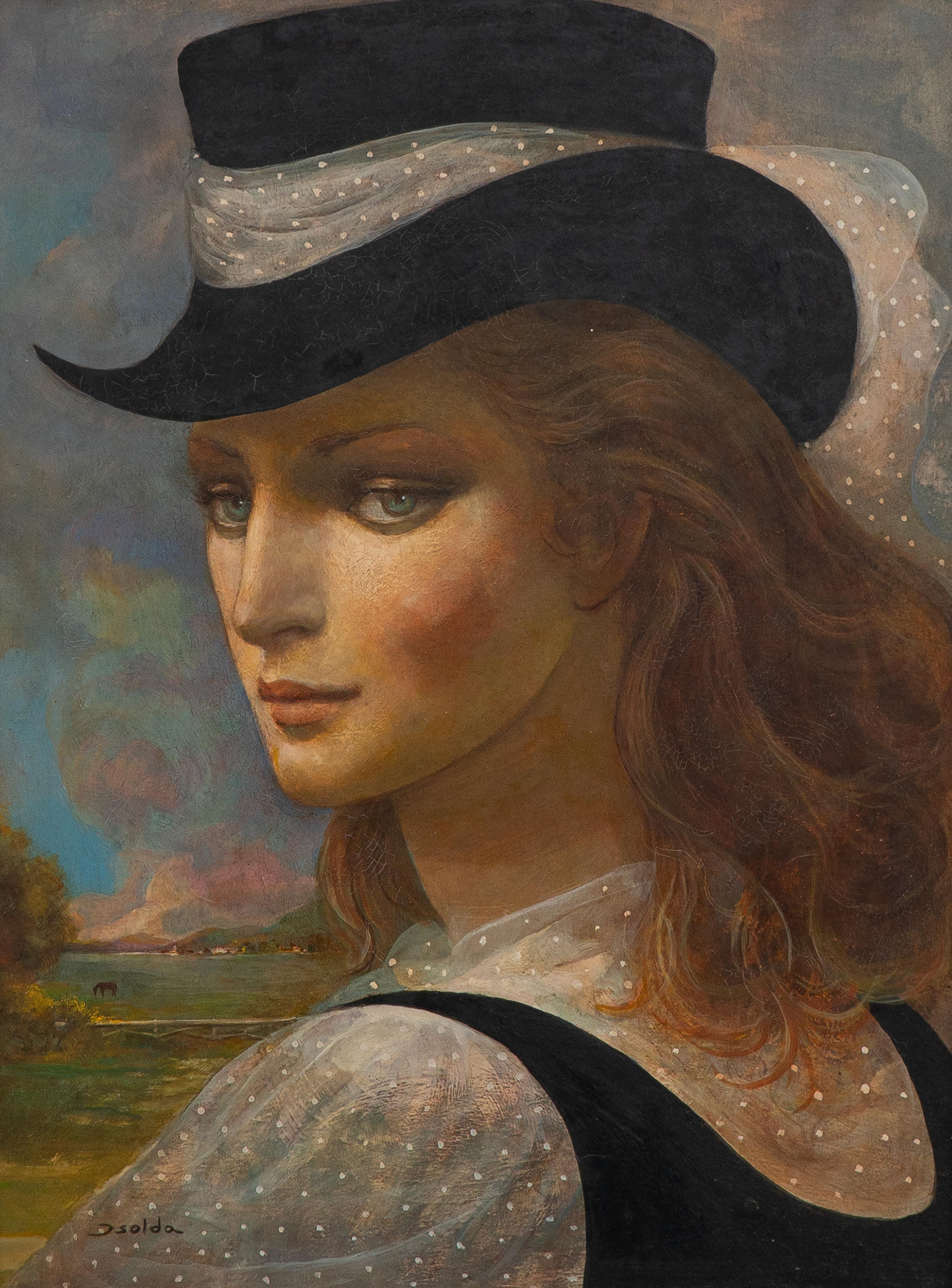 Isolda Hermes da Fonseca Chapman - Figura feminina - Óleo sobre madeira - Assinado canto inferior esquerdo - 52 x 40 cm. Coleção Múcio Bandeira de Mello.