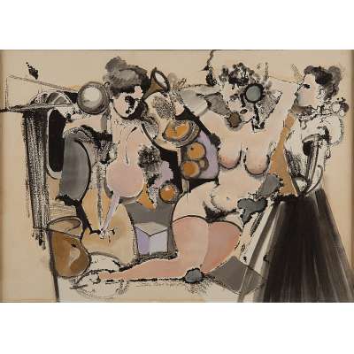 Italo Cencini técnica mista sobre cartão 20 x 28cm "Sem Titulo" ass. CID datada 1976