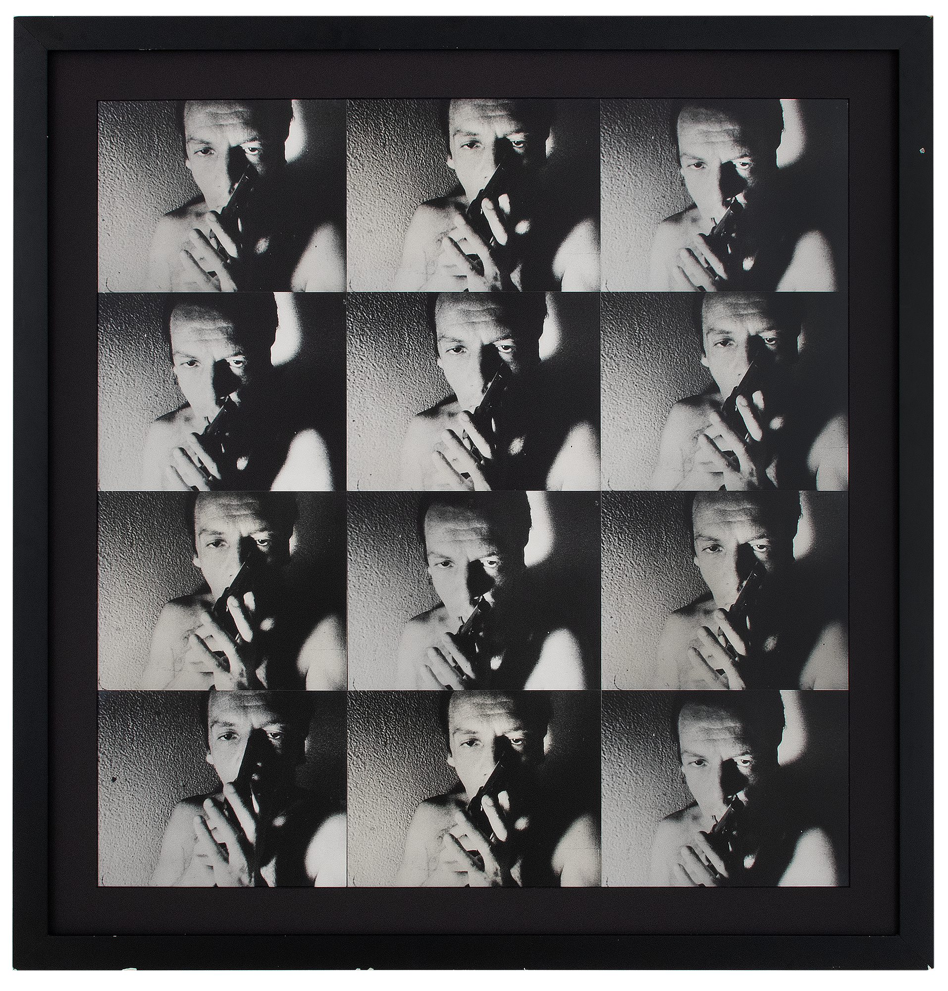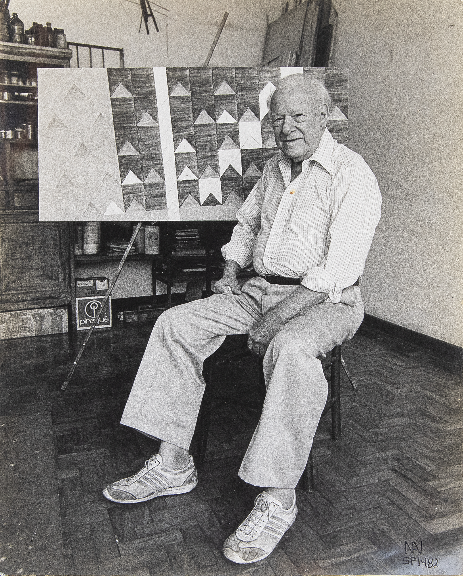 Ivan Cardoso - Alfredo Volpi, em seu atelier - Da série 'Quotidianas Kodaks' - Fotografia analógica P&b em papel Kodak brilhante. - Assinada, datada 1982, e situada SP inferior direito. - Assinada, datada 1982 e titulada no verso. - 24 x 30 cm.