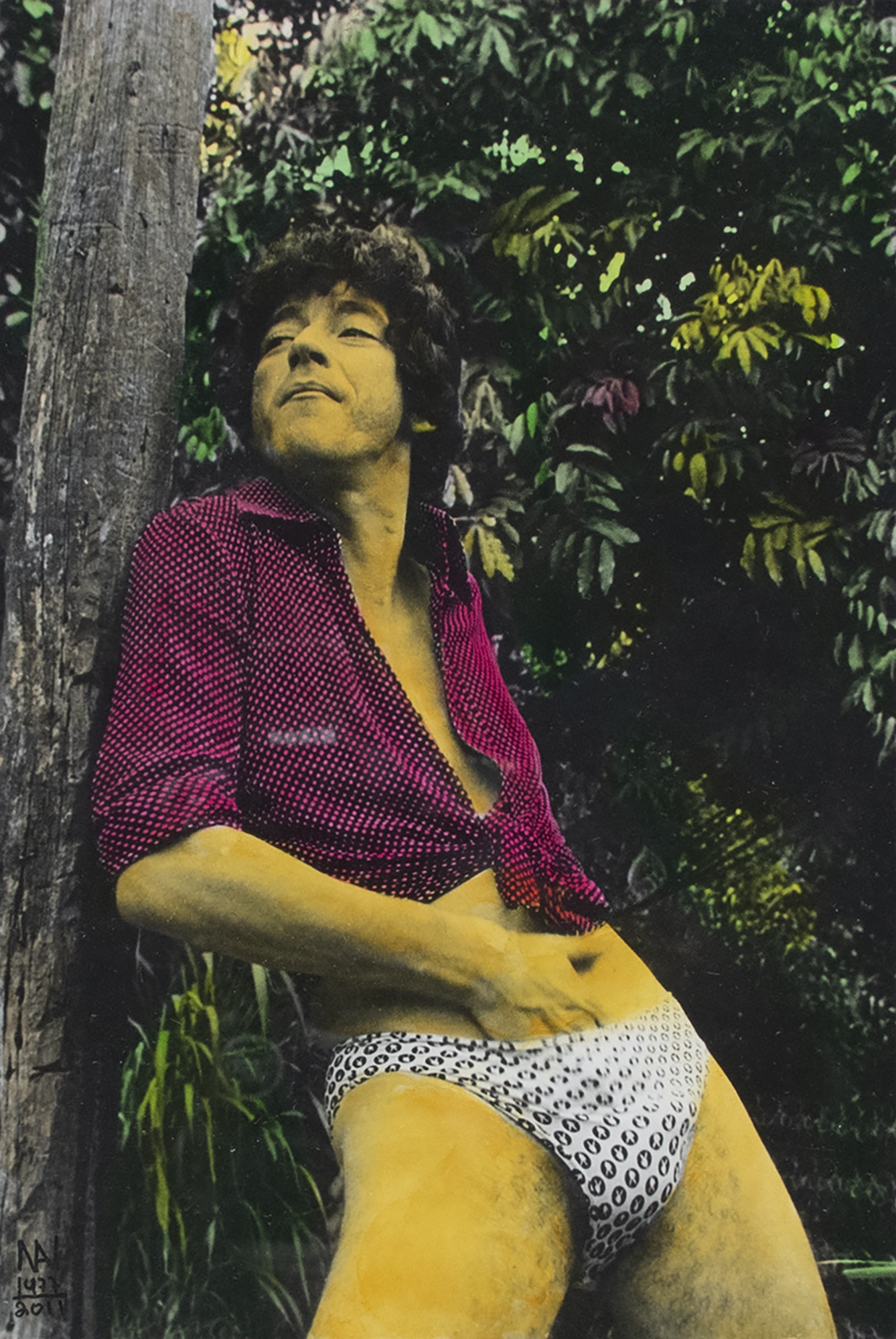 Ivan Cardoso - Raul seixas de cueca - Fotografia analógica, em papel Kodak fosco P&B - Assinada e datada 1977 inferior esquerdo. - Colorizada à mão pelo artista 2011. - Assinada datada 1977/2011 titulada e situado Rio no verso. - Edição Única. - 18 x 29 cm.