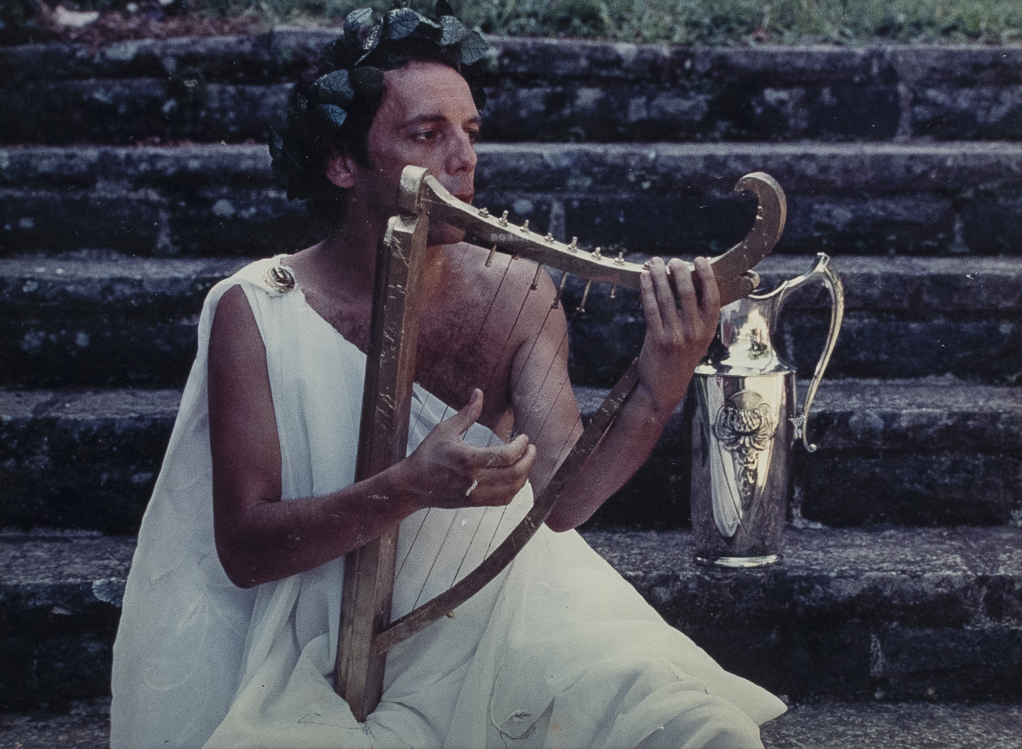 Ivan Cardoso - Hélio oiticica tacando Harpa em roma antiga - Fotografia analógica P&b em papel Kodak fosco. - Assinada datada 1978/2007, titulada e situada Rio no verso. - PA. - 30 X 40 cm.