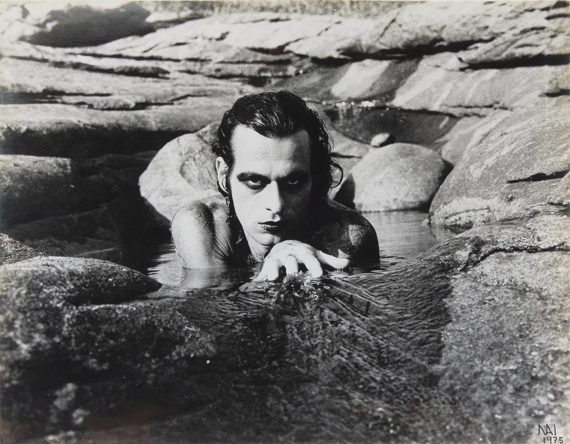 Ivan Cardoso - Ney matogrosso na praia - Da série 'Quotidianas Kodaks' - Fotografia analógica P&B em papel Kodak brilhante. - Assinada e datada 1975 inferior direito. - Assinada, datada 1975 e titulada no verso. - 24 x 30 cm.