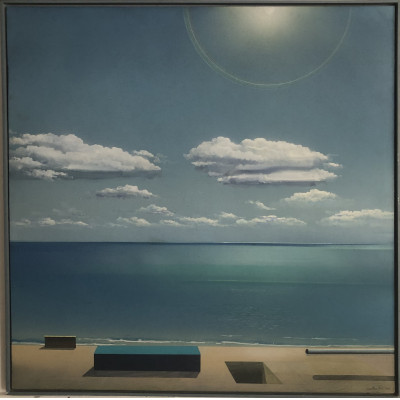 Ivan Freitas - Paisagem marinha. Óleo e pastel sobre eucatex, 70x90 cm, 1988, A.C.I.D e V. Com moldura