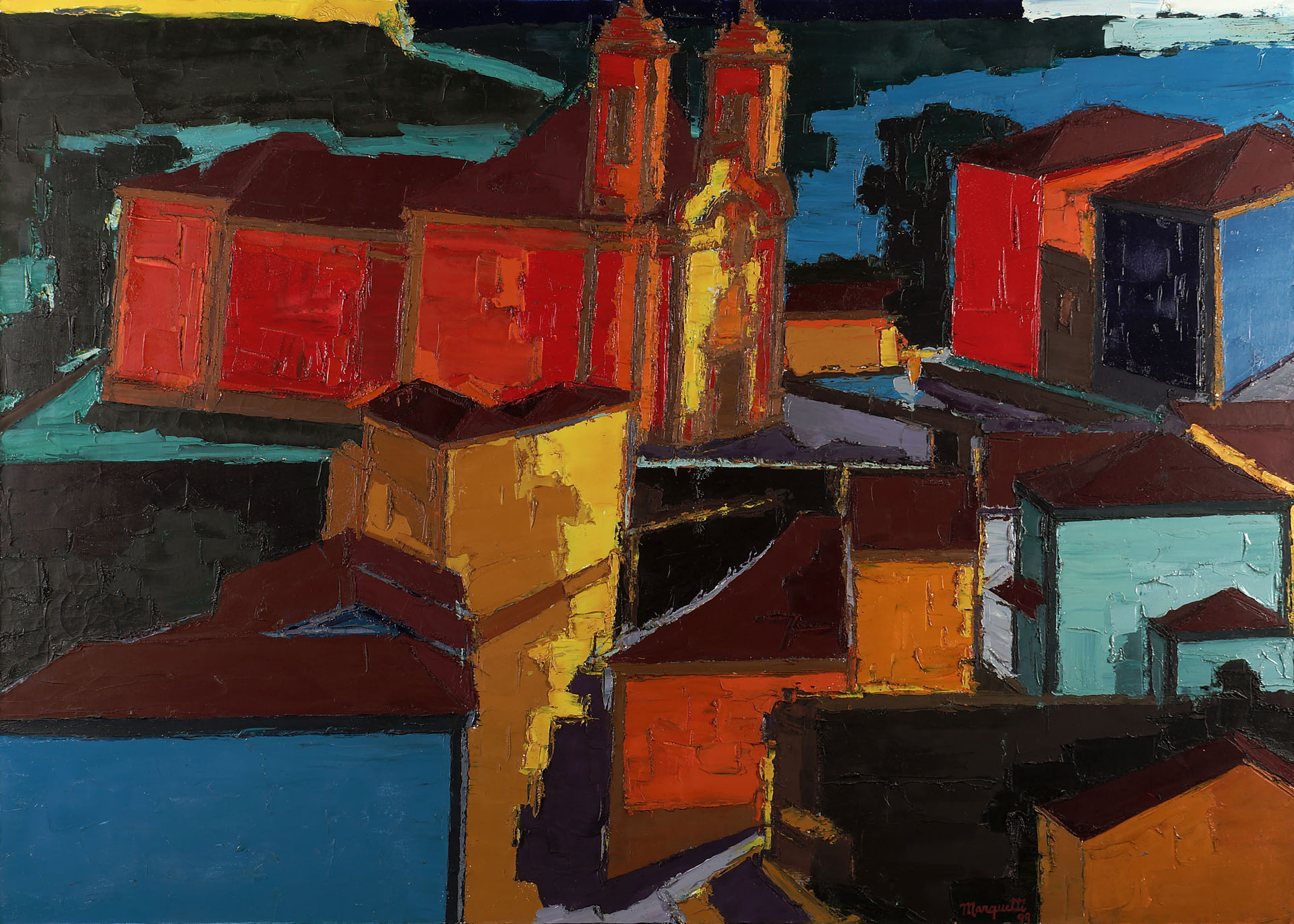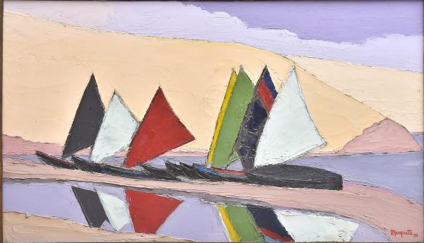Ivan Marquetti - Montanhas e estradas - 1964 - Óleo sobre tela - Assinado meio inferior - 60 x 81 cm.