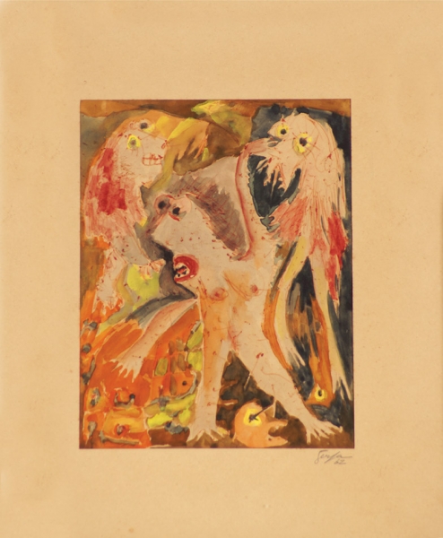 IVAN SERPA "Sem Titulo" Tecnica Mista S/ Papel -Med 26 x 20 cm (Obra) 47x40 cm (Mold) -Assin e Dat 26-4-62 no CID. Possui moldura em madeira, paspatur e vidro de proteção.