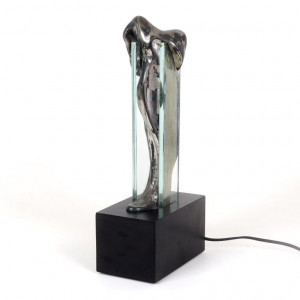 Jacqueline Terpins - S/T - Luminária em bronze niquelado e vidro - assinada - 1983 - 39 cm alt. com a base.