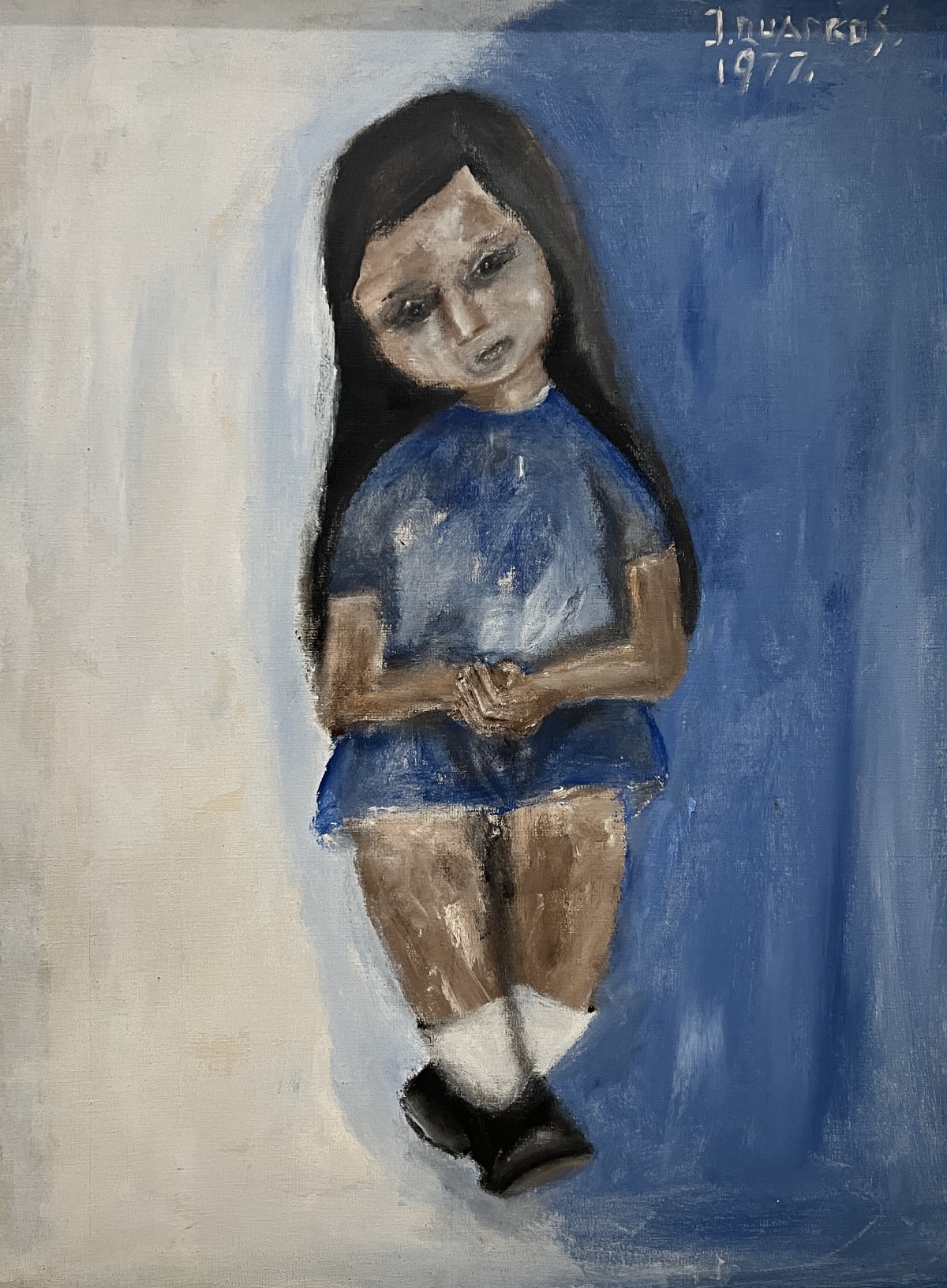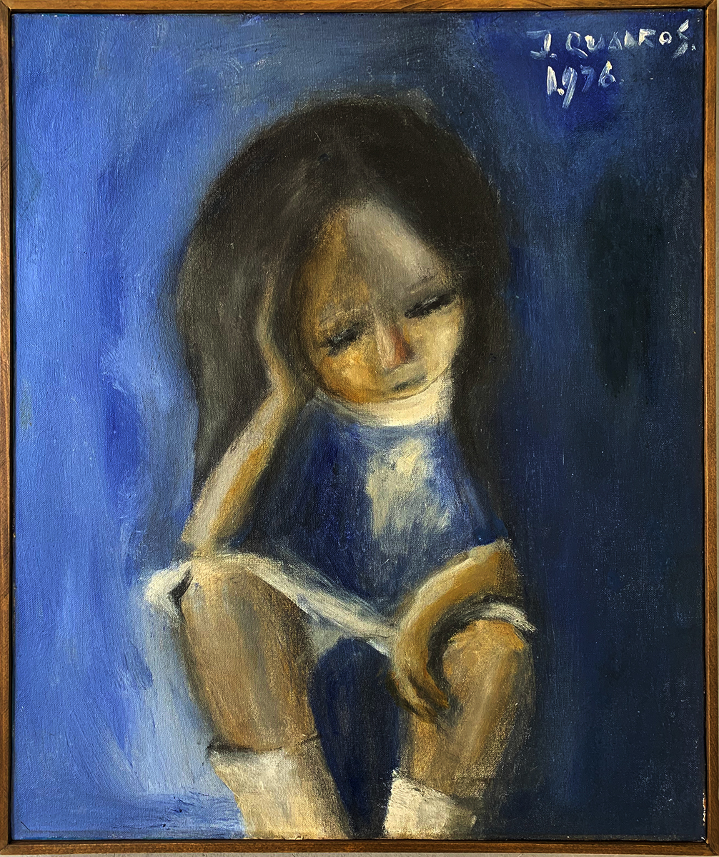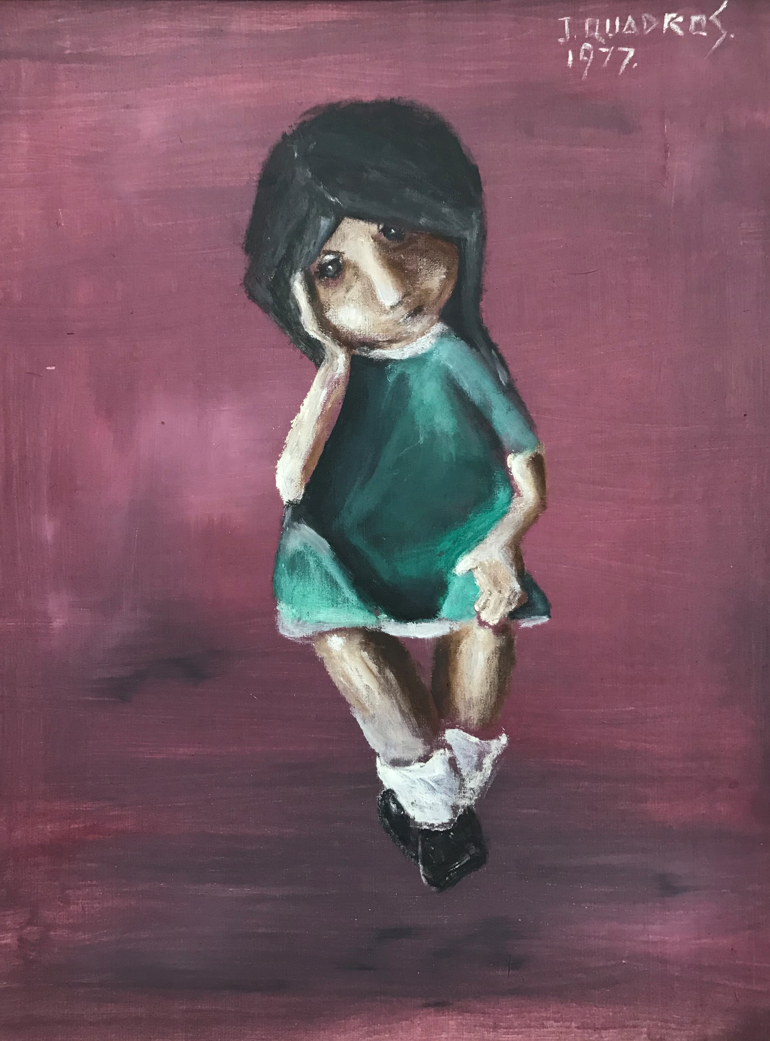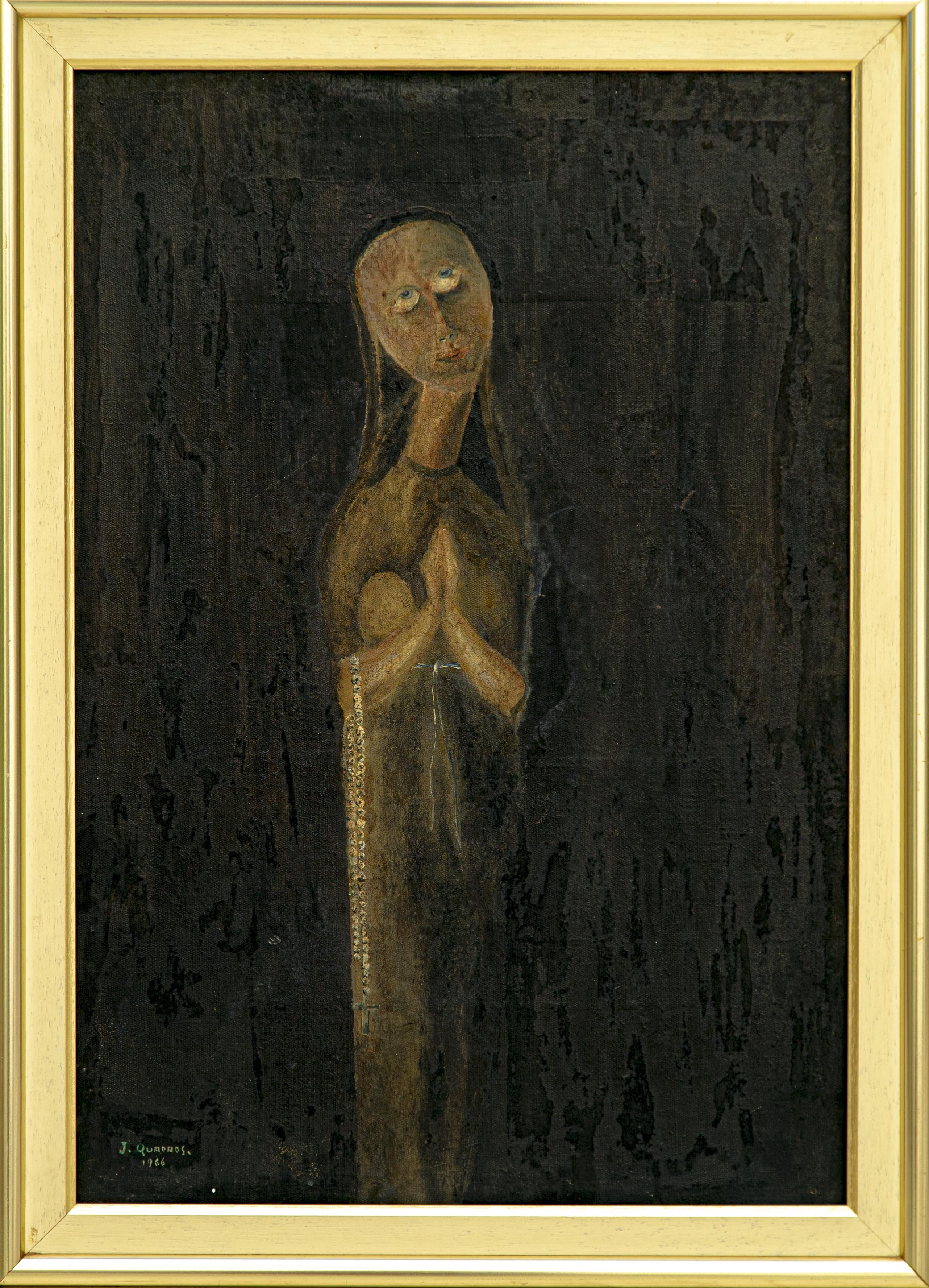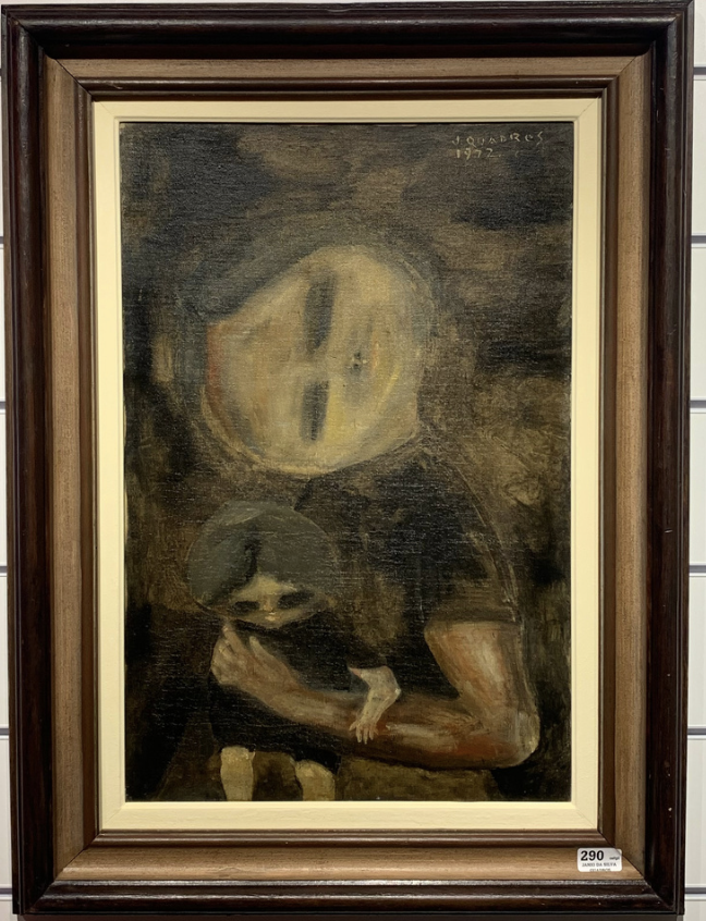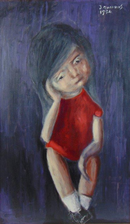 Jânio Quadros - Figura feminina - 1976 - Óleo sobre tela - Assinado canto superior direito - 80 x 60 cm. Carimbo da exposição Jânio Quadro, Pinturas 1976, A Galeria, São Paulo, SP. Coleção Múcio Bandeira de Mello.