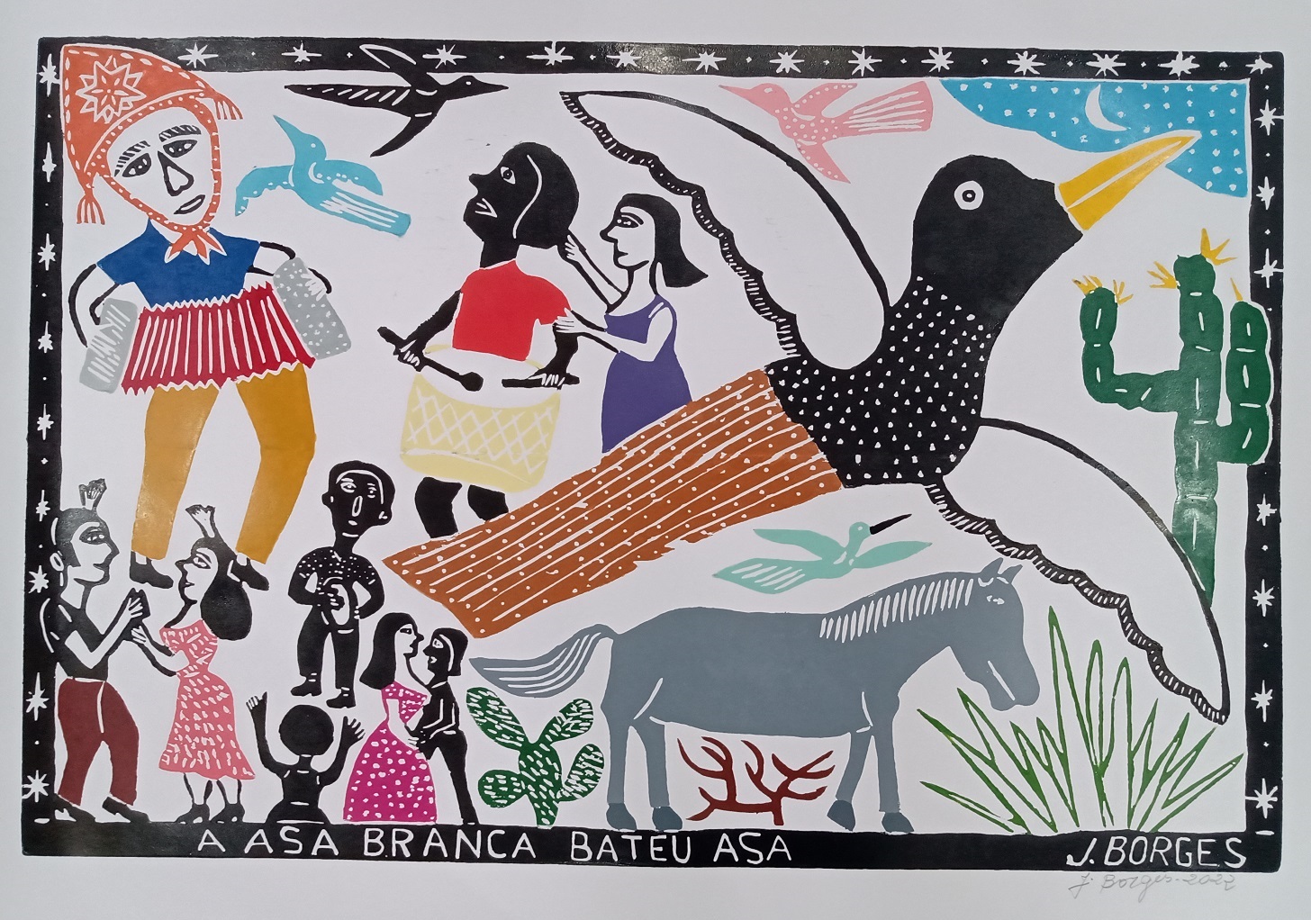 J Borges - Festival dos violeiros - 31 x 53 cm - Serigrafia - Assinatura canto inferior direito e Data 1978