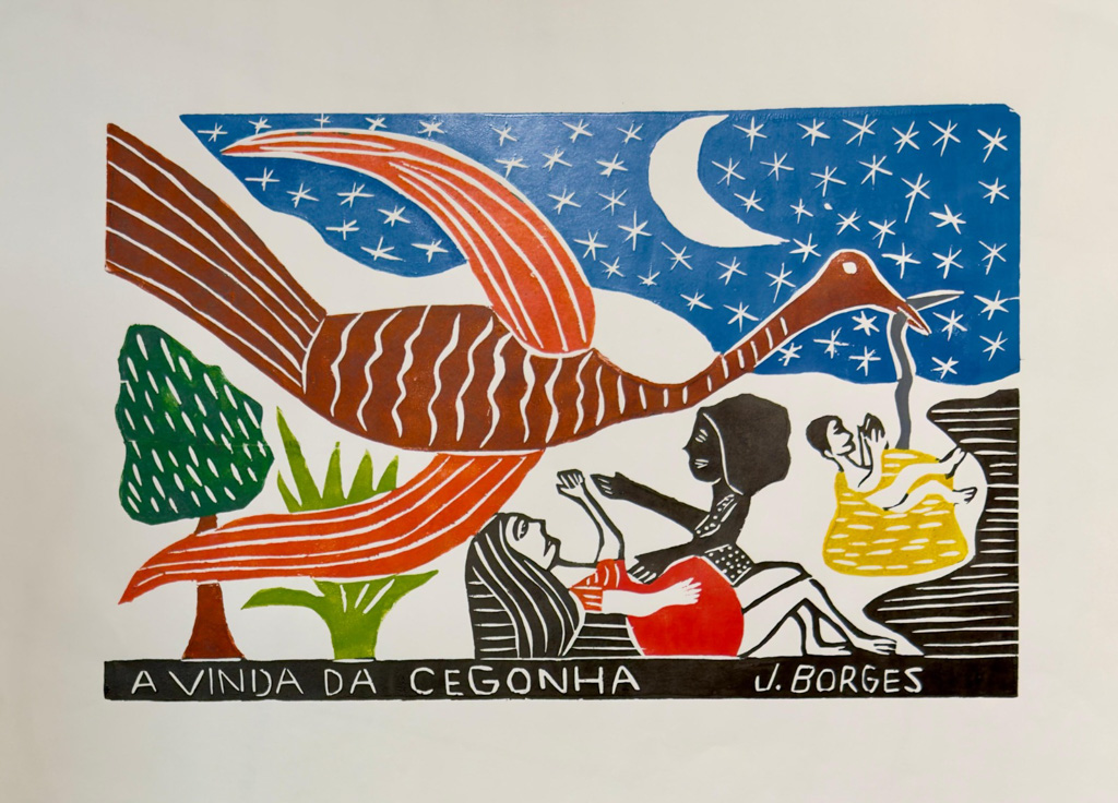 A Vinda da Cegonha - 47 x 65 cm - Xilogravura Sem Moldura - Ass. Canto Inferior Direito - Perfeito Estado