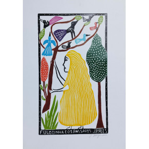 Fulozinha e os pássaros - J. Borges - 66 x 48 - cid - 2022 - Obra sem moldura