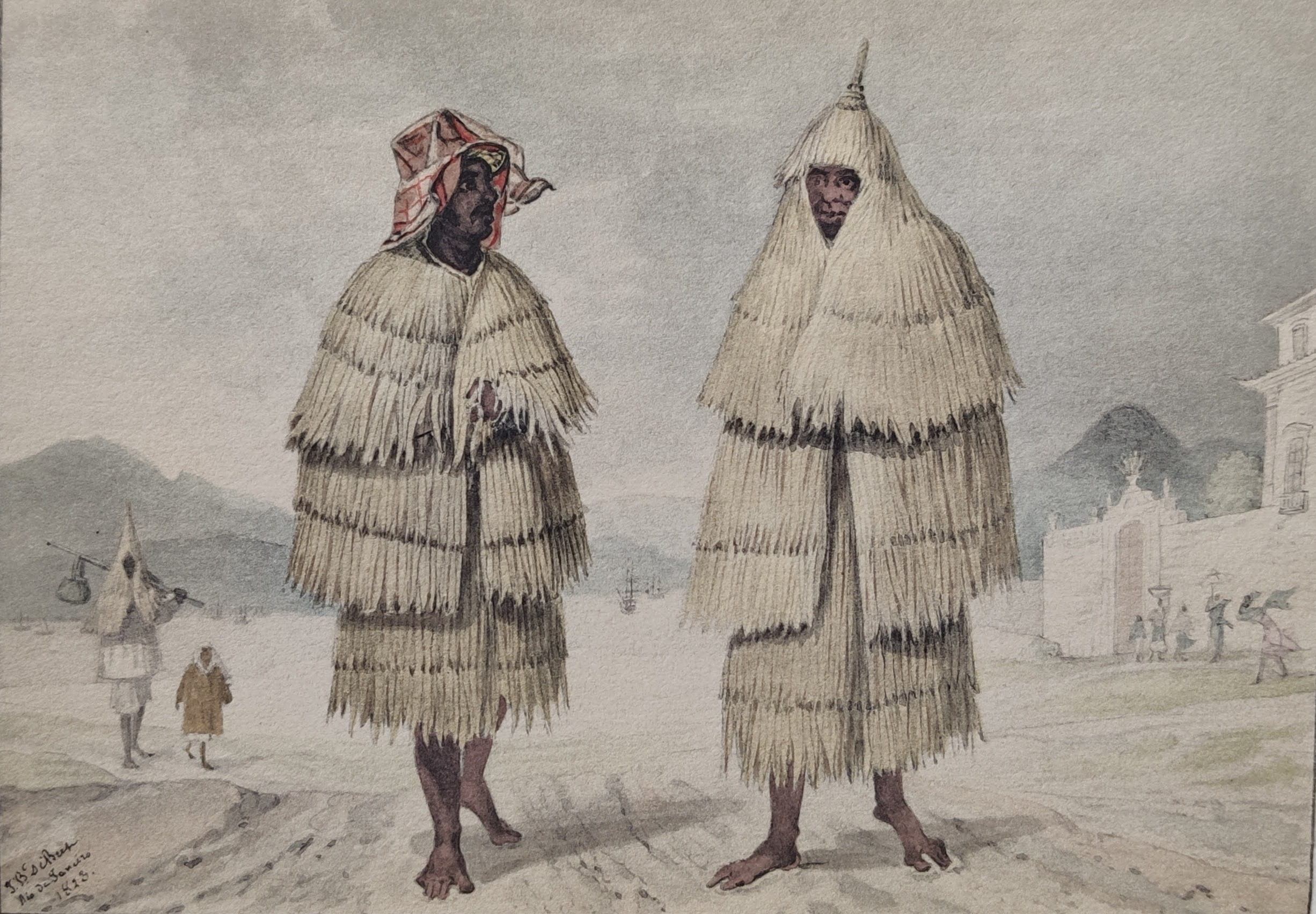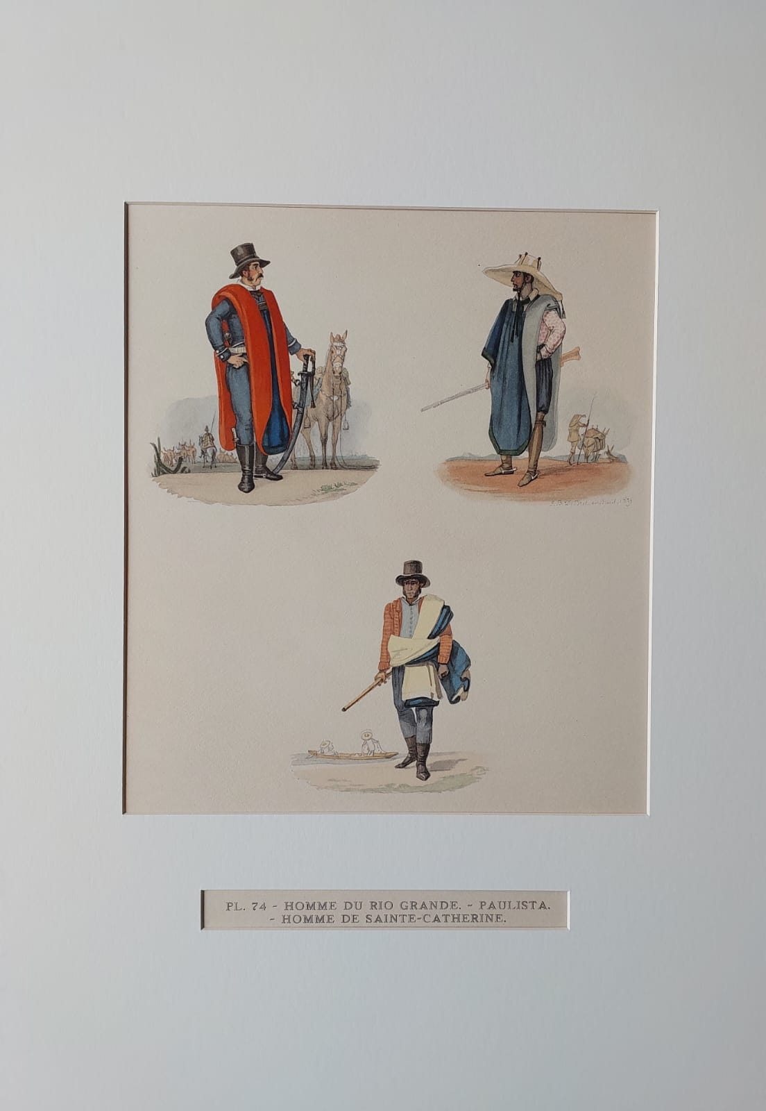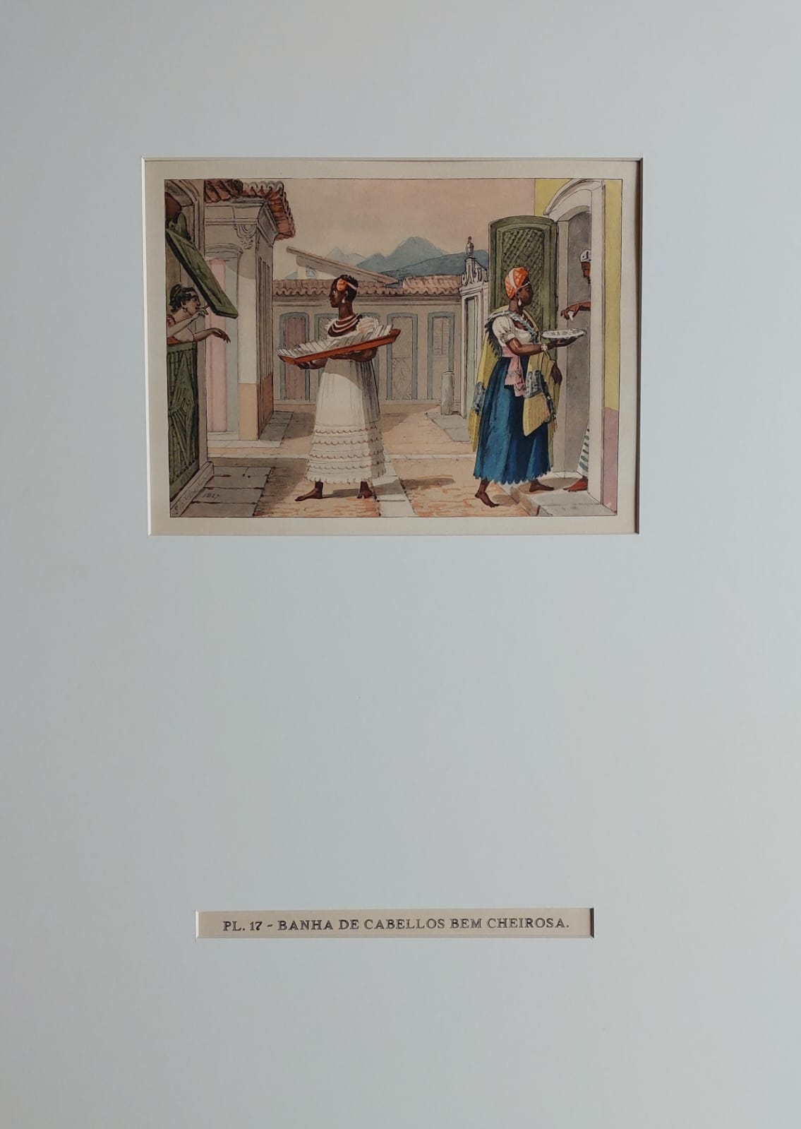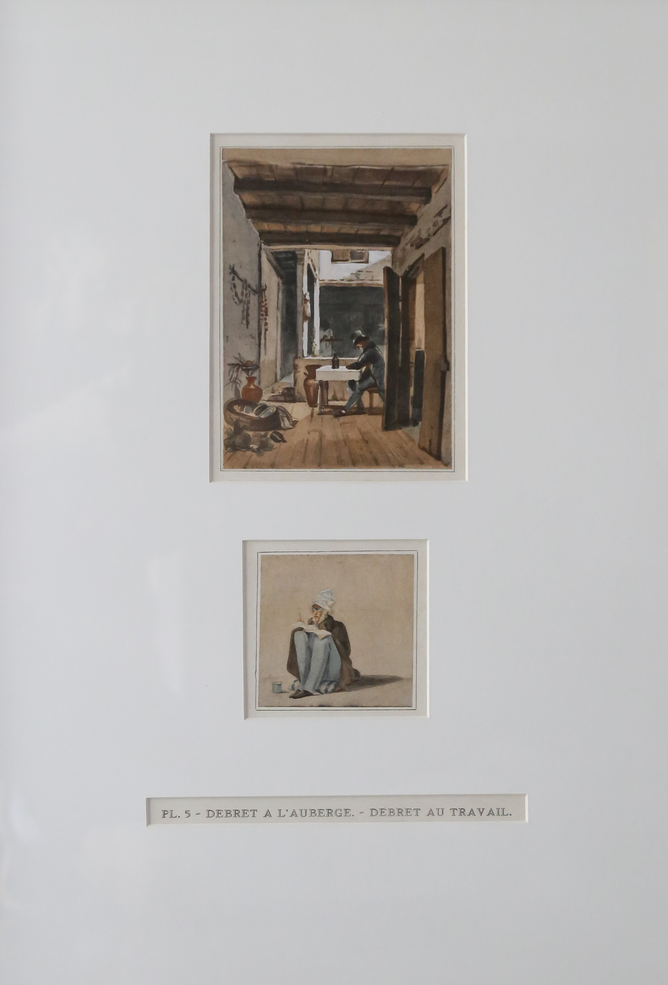 Jean-Baptiste Debret , pintor, desenhista, gravador, professor, decorador, cenógrafo. Freqüenta a Academia de Belas Artes, em Paris, entre 1785 e 1789, aluno de Jacques-Louis David (1748 - 1825), seu primo e líder do neoclassicismo francês. Estuda fortificações na École de Ponts et Chaussée [Escola de Pontes e Rodovias, futura Escola Politécnica], onde se torna professor de desenho. Em 1798, auxilia os arquitetos Percier e Fontaine na decoração de edifícios. Por volta de 1806, trabalha como pintor na corte de Napoleão (1769 - 1821). Após a queda do imperador e com a morte de seu único filho, Debret decide integrar a Missão Artística Francesa, que vem ao Brasil em 1816. Instala-se no Rio de Janeiro e, a partir de 1817, ministra aulas de pintura em seu ateliê, onde tem como aluno Simplício de Sá (1785 - 1839). Em 1818, colabora na decoração pública para a aclamação de D. João VI (1767 - 1826), no Rio de Janeiro. Por volta de 1825, realiza águas-fortes, que estão na Seção de Estampas da Biblioteca Nacional do Rio de Janeiro. De 1826 a 1831, é professor de pintura histórica na Academia Imperial de Belas Artes - Aiba, atividade que alterna com viagens para várias cidades do país, quando retrata tipos humanos, costumes e paisagens locais. Na Aiba tem como alunos Porto Alegre (1806 - 1879) e August Müller (1815 - ca.1883). Em 1829, organiza a Exposição da Classe de Pintura Histórica da Imperial Academia das Bellas Artes, primeira mostra pública de arte no Brasil. Deixa o país em 1831 e retorna a Paris com o discípulo Porto Alegre. Entre 1834 e 1839, edita, o livro Viagem Pitoresca e Histórica ao Brasil, em três volumes, ilustrado com litogravuras que têm como base as aquarelas realizadas com seus estudos e observações.