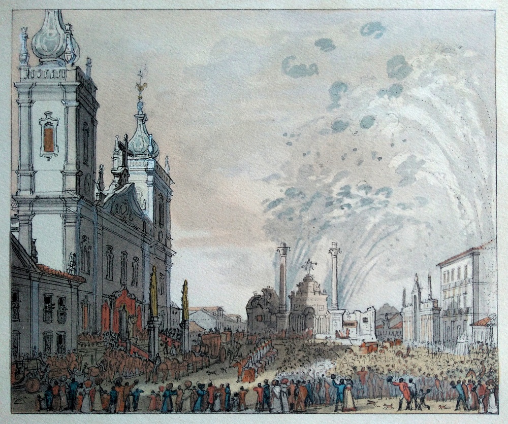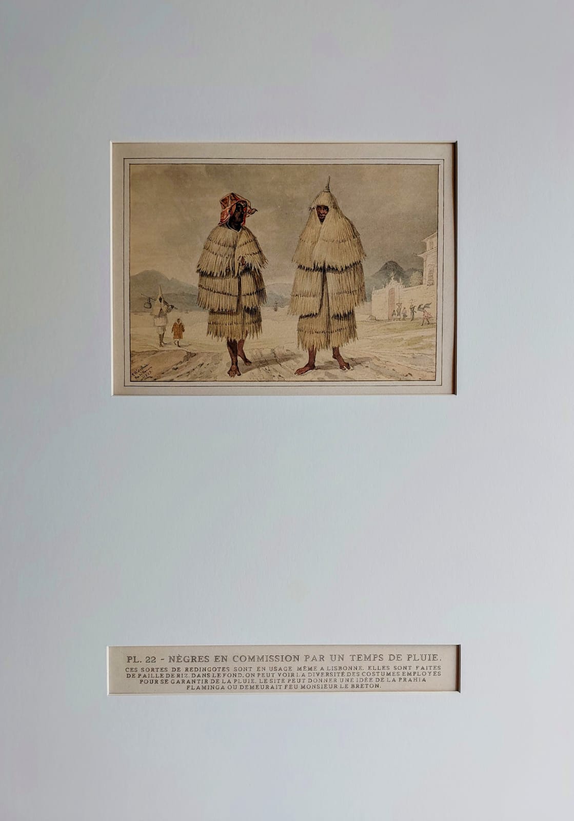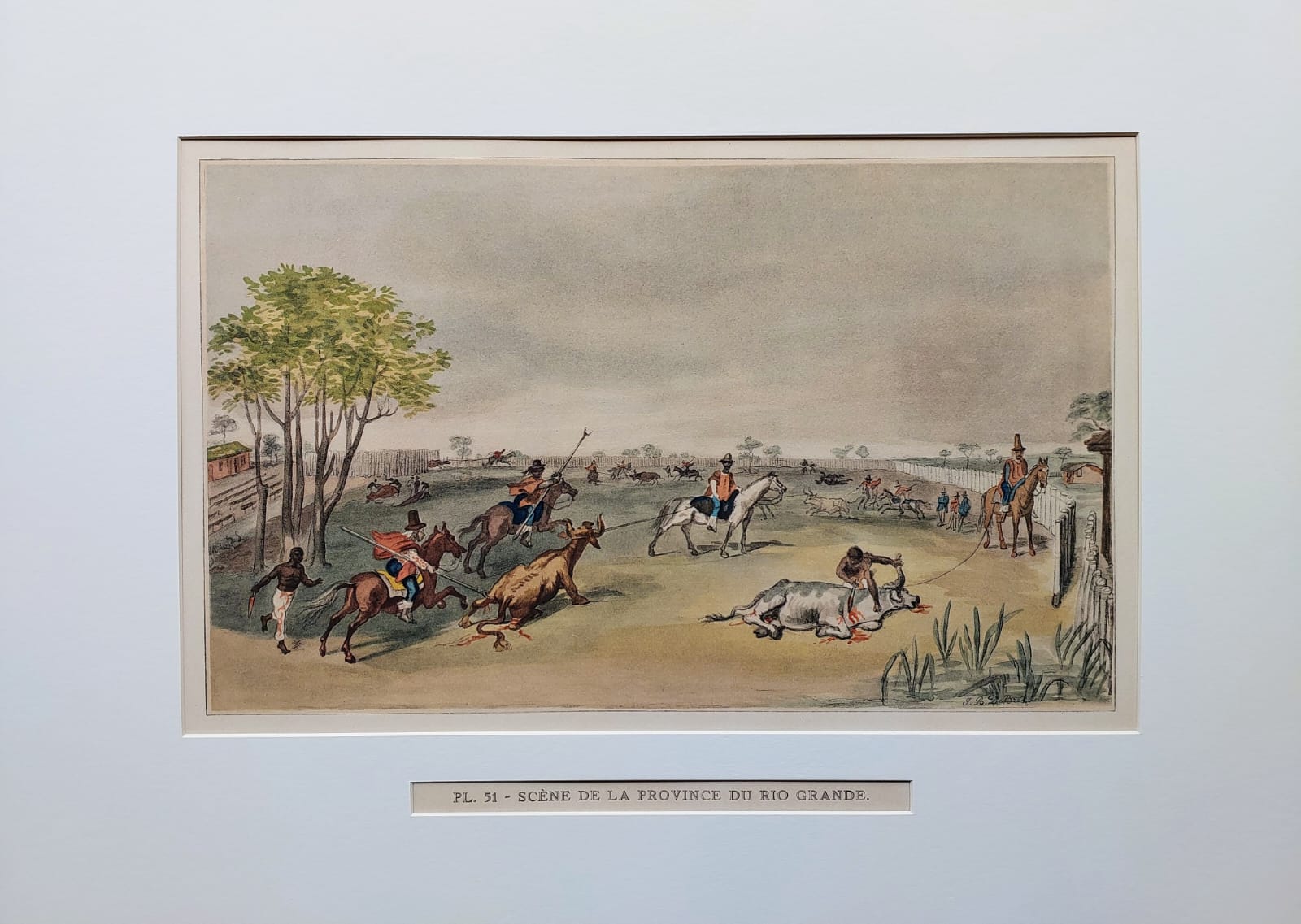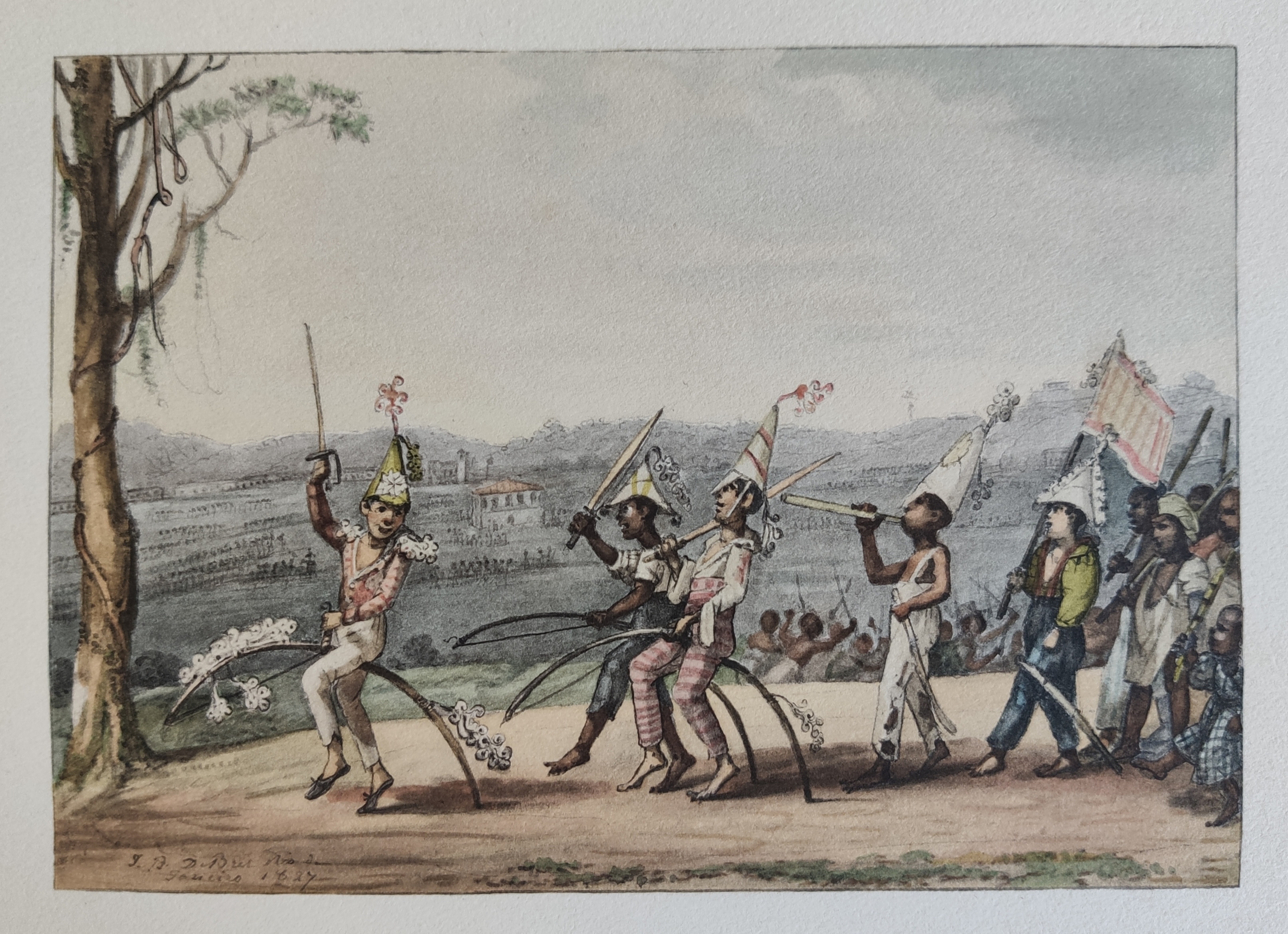 Jean-Baptiste Debret , pintor, desenhista, gravador, professor, decorador, cenógrafo. Freqüenta a Academia de Belas Artes, em Paris, entre 1785 e 1789, aluno de Jacques-Louis David (1748 - 1825), seu primo e líder do neoclassicismo francês. Estuda fortificações na École de Ponts et Chaussée [Escola de Pontes e Rodovias, futura Escola Politécnica], onde se torna professor de desenho. Em 1798, auxilia os arquitetos Percier e Fontaine na decoração de edifícios. Por volta de 1806, trabalha como pintor na corte de Napoleão (1769 - 1821). Após a queda do imperador e com a morte de seu único filho, Debret decide integrar a Missão Artística Francesa, que vem ao Brasil em 1816. Instala-se no Rio de Janeiro e, a partir de 1817, ministra aulas de pintura em seu ateliê, onde tem como aluno Simplício de Sá (1785 - 1839). Em 1818, colabora na decoração pública para a aclamação de D. João VI (1767 - 1826), no Rio de Janeiro. Por volta de 1825, realiza águas-fortes, que estão na Seção de Estampas da Biblioteca Nacional do Rio de Janeiro. De 1826 a 1831, é professor de pintura histórica na Academia Imperial de Belas Artes - Aiba, atividade que alterna com viagens para várias cidades do país, quando retrata tipos humanos, costumes e paisagens locais. Na Aiba tem como alunos Porto Alegre (1806 - 1879) e August Müller (1815 - ca.1883). Em 1829, organiza a Exposição da Classe de Pintura Histórica da Imperial Academia das Bellas Artes, primeira mostra pública de arte no Brasil. Deixa o país em 1831 e retorna a Paris com o discípulo Porto Alegre. Entre 1834 e 1839, edita, o livro Viagem Pitoresca e Histórica ao Brasil, em três volumes, ilustrado com litogravuras que têm como base as aquarelas realizadas com seus estudos e observações.