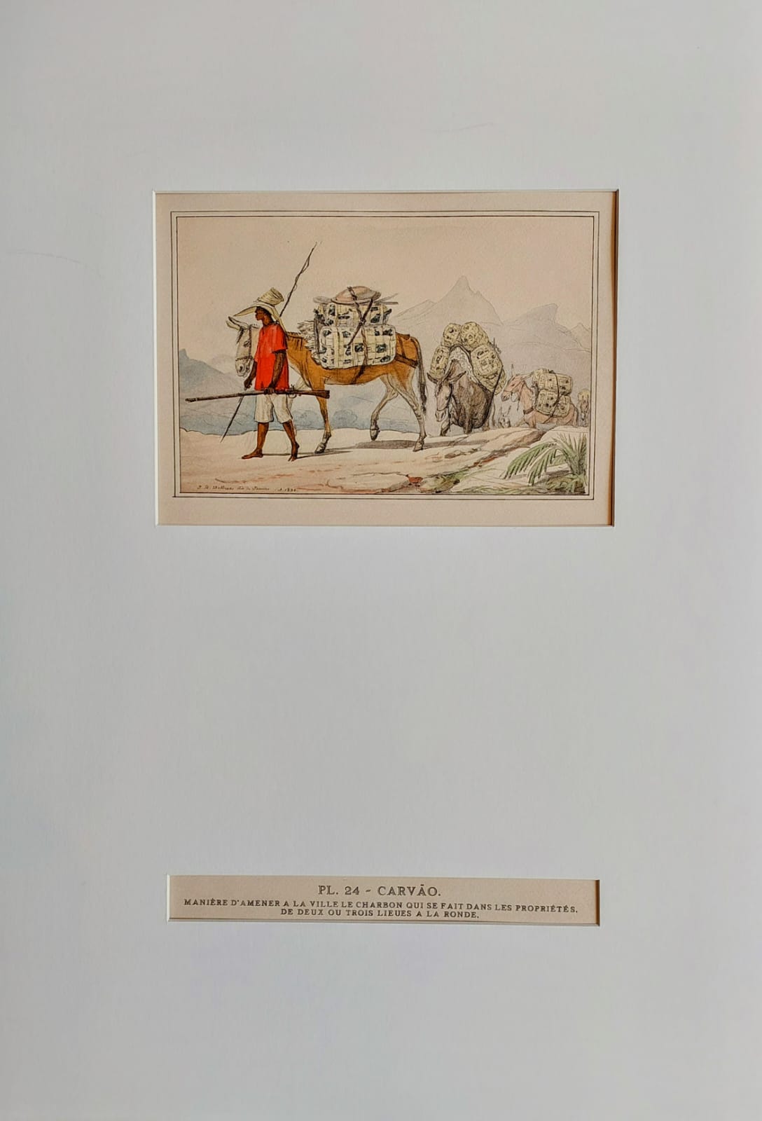 Jean-Baptiste Debret , pintor, desenhista, gravador, professor, decorador, cenógrafo. Freqüenta a Academia de Belas Artes, em Paris, entre 1785 e 1789, aluno de Jacques-Louis David (1748 - 1825), seu primo e líder do neoclassicismo francês. Estuda fortificações na École de Ponts et Chaussée [Escola de Pontes e Rodovias, futura Escola Politécnica], onde se torna professor de desenho. Em 1798, auxilia os arquitetos Percier e Fontaine na decoração de edifícios. Por volta de 1806, trabalha como pintor na corte de Napoleão (1769 - 1821). Após a queda do imperador e com a morte de seu único filho, Debret decide integrar a Missão Artística Francesa, que vem ao Brasil em 1816. Instala-se no Rio de Janeiro e, a partir de 1817, ministra aulas de pintura em seu ateliê, onde tem como aluno Simplício de Sá (1785 - 1839). Em 1818, colabora na decoração pública para a aclamação de D. João VI (1767 - 1826), no Rio de Janeiro. Por volta de 1825, realiza águas-fortes, que estão na Seção de Estampas da Biblioteca Nacional do Rio de Janeiro. De 1826 a 1831, é professor de pintura histórica na Academia Imperial de Belas Artes - Aiba, atividade que alterna com viagens para várias cidades do país, quando retrata tipos humanos, costumes e paisagens locais. Na Aiba tem como alunos Porto Alegre (1806 - 1879) e August Müller (1815 - ca.1883). Em 1829, organiza a Exposição da Classe de Pintura Histórica da Imperial Academia das Bellas Artes, primeira mostra pública de arte no Brasil. Deixa o país em 1831 e retorna a Paris com o discípulo Porto Alegre. Entre 1834 e 1839, edita, o livro Viagem Pitoresca e Histórica ao Brasil, em três volumes, ilustrado com litogravuras que têm como base as aquarelas realizadas com seus estudos e observações.