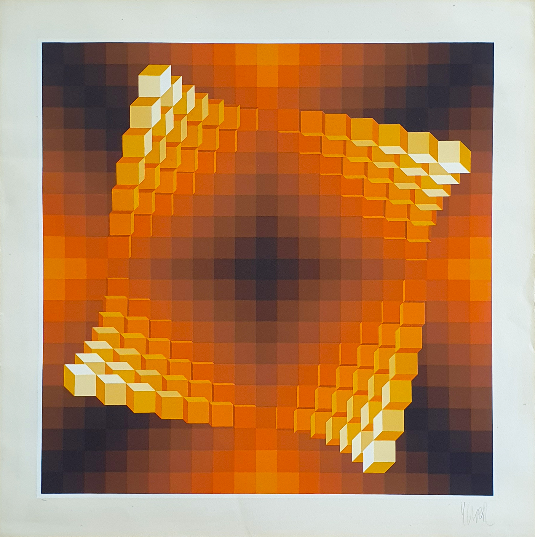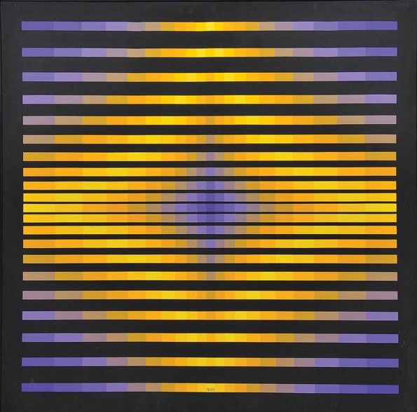 Jean Paul Yvaral (Paris, 1934 - 2002) - Filho de Victor Vasarely, conhecido como Yvaral, começou seguindo os passos do pai, estudando publicidade e grafismo na L'école de Arts Appliquées de Paris. Yvaral tornou-se um dos mais célebres representantes da pesquisa da arte cinética nas décadas de 60 e 70, atuando tanto nos estudos das relações entre ciência e arte, como no uso da programação matemática na criação do objeto pictórico. Fundou, com Júlio Le Parc e outros importantes artistas, o Groupe de Recherche d'Art Visuel, em 1960. Yvaral desenvolveu fórmulas e codificações de elementos visuais, buscando uma lógica de resultados para suas criações. Propôs, assim, diferentes espaços e tempos a partir do deslocamento do espectador diante do objeto artístico. Yvaral deixou uma vasta produção. Foi considerado presença obrigatória no estudo da história da arte cinética e peça de resistência de coleções públicas e privadas voltadas para o tema da arte óptical-cinética. Yvaral sentia-se ligado à linha da pesquisa da arte iniciada por Malévitch e a vanguarda russa, posterior a Mondrian e a Escola de Bauhus. Os artistas Josef Alberts, Max Bill e seu pai, Victor Vasarely, completam seu principal foco de pesquisa e influência.