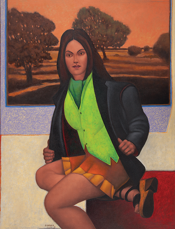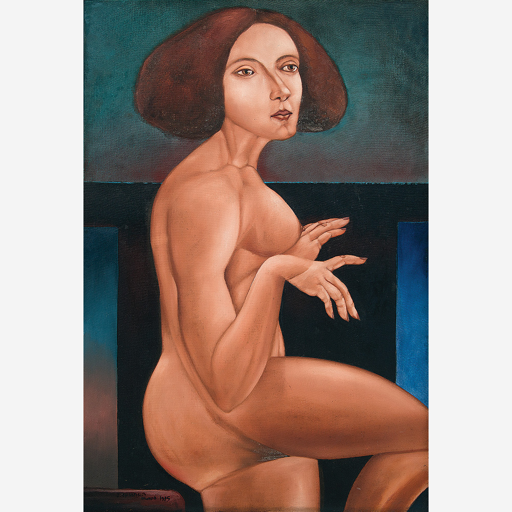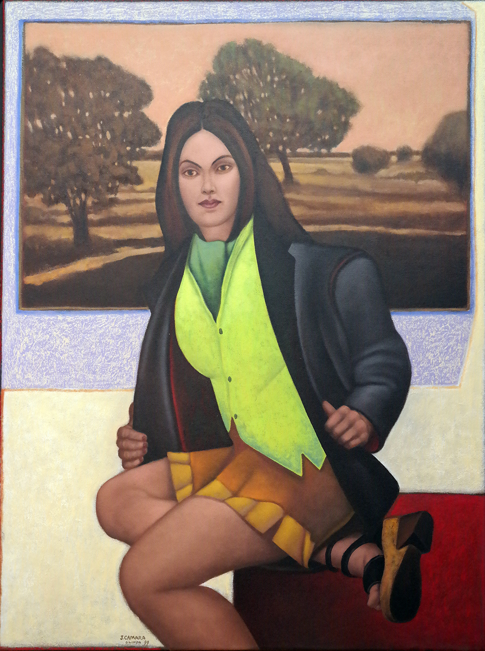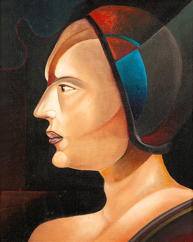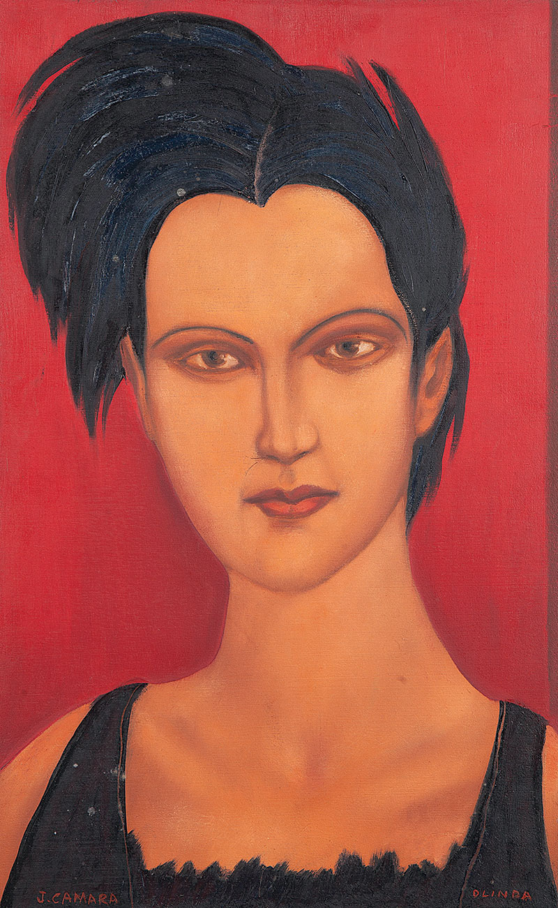 João Câmara - A enferma de casa amarela - Óleo sobre madeira - Assinado canto superior direito - 55 x 42 cm. Situado Olinda. Coleção Múcio Bandeira de Mello.