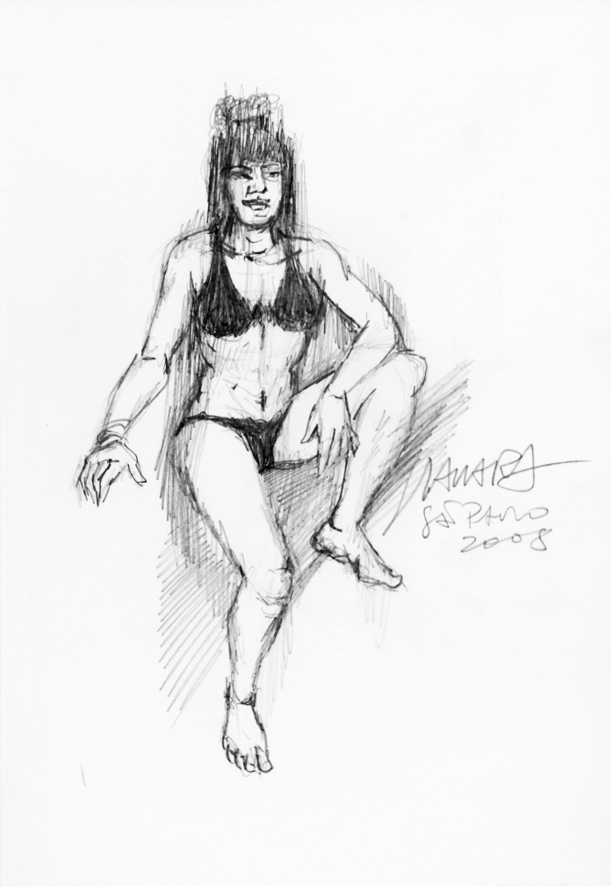 João Câmara - Nu feminino - Nanquim sobre papel, assinado superior direito. - 24 x 24 cm.