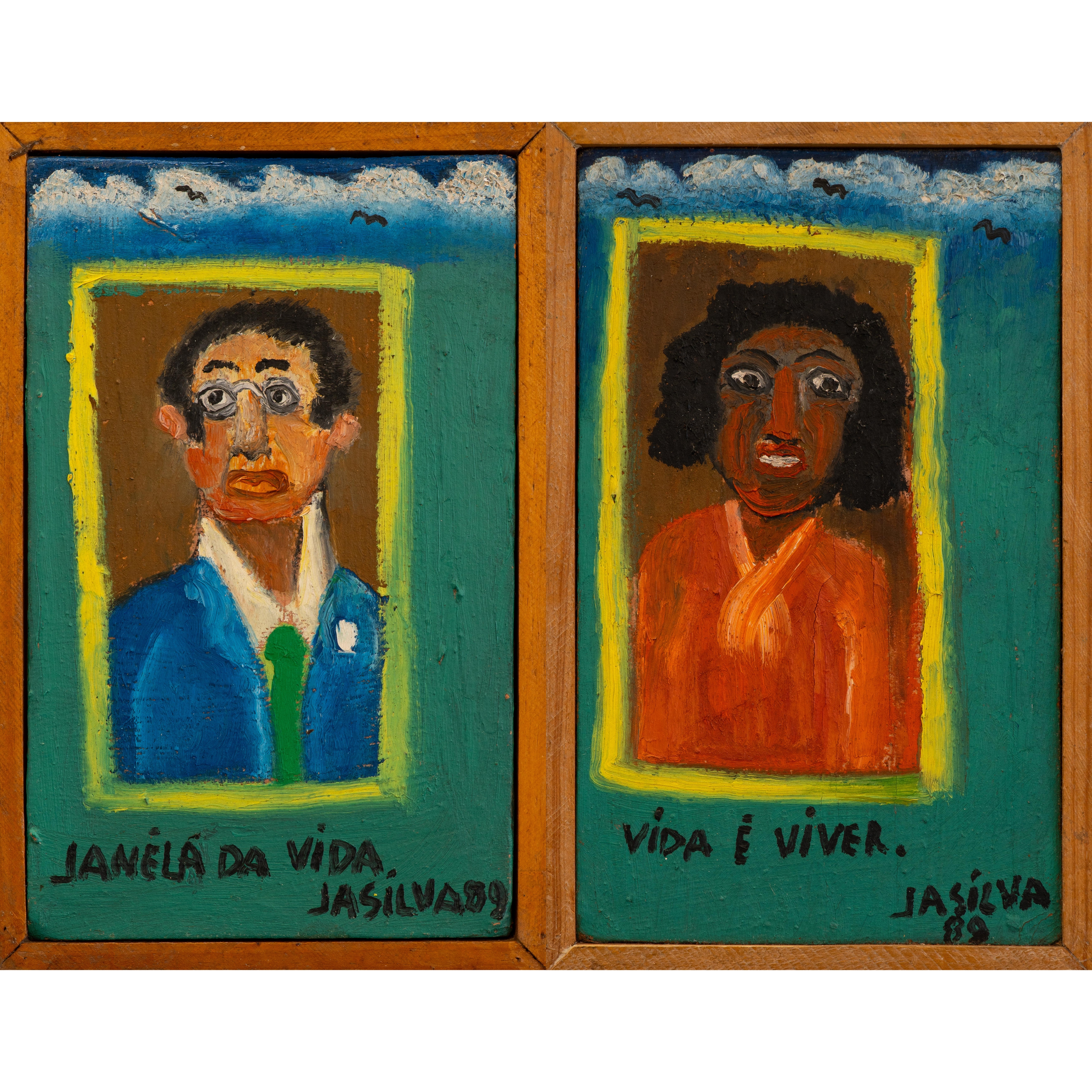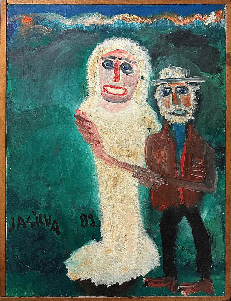 JOSÉ ANTÔNIO DA SILVA - Mulher e Frade - Óleo Sobre Tela - Ass.dat.1972 inf.esq.- 41 x 32 cm.