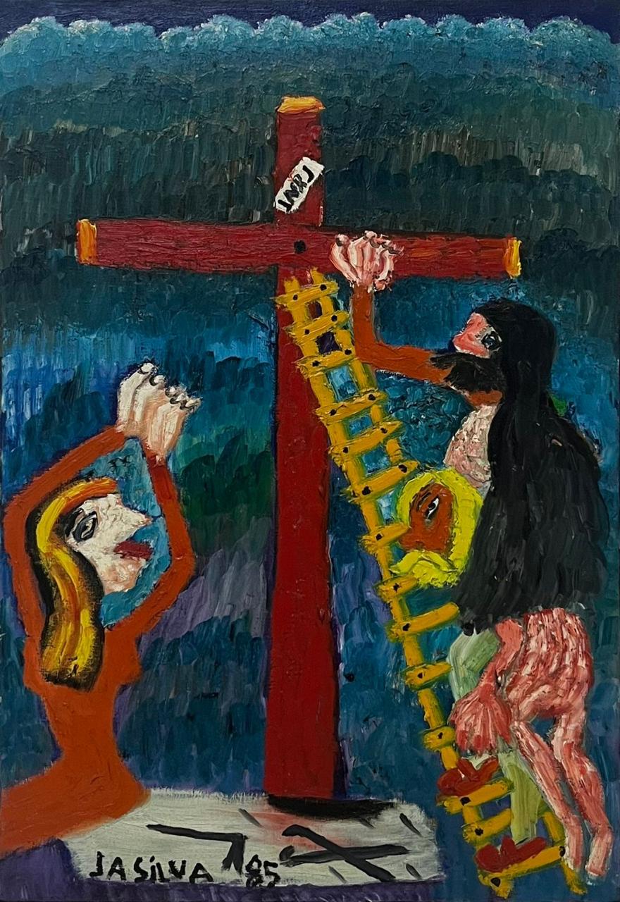 José Antônio da Silva - Crucificação - 55 x 38 cm - Óleo sobre tela - Assinatura canto inferior esquerdo e Data 1985