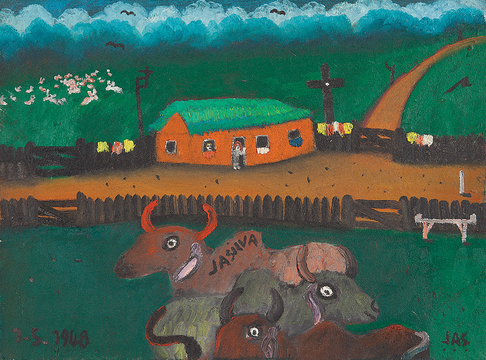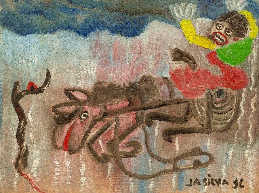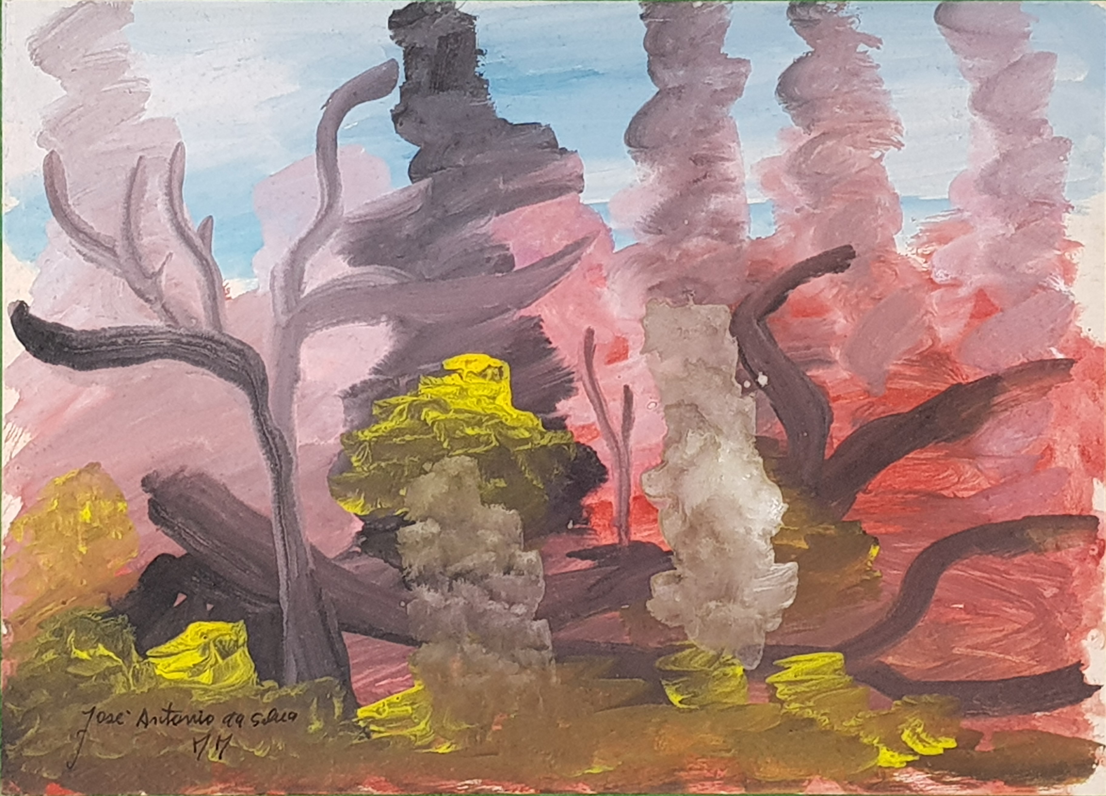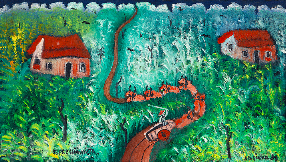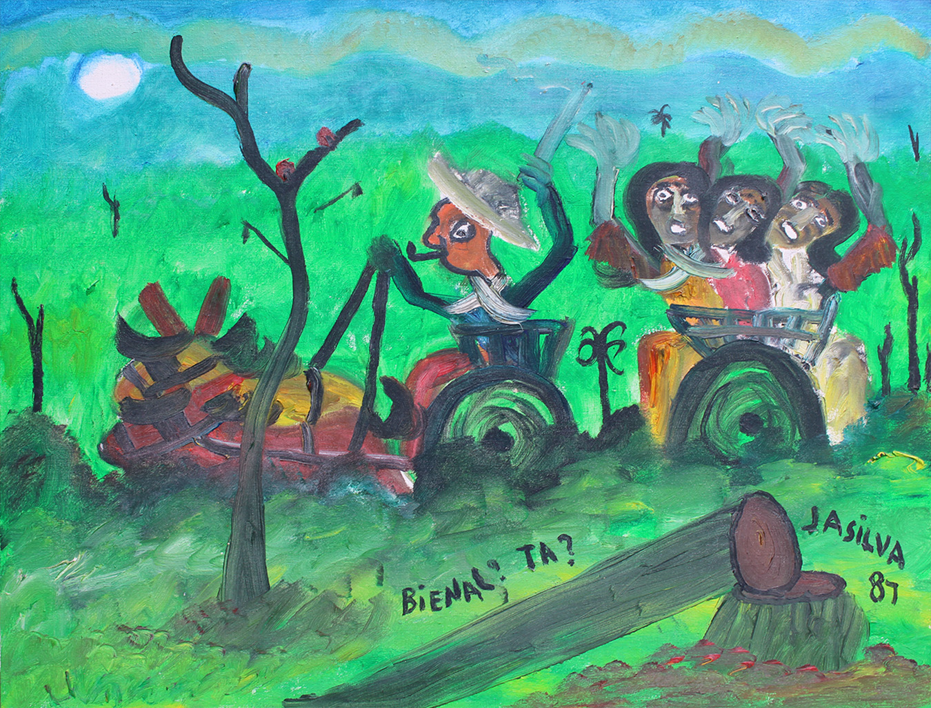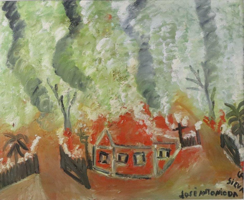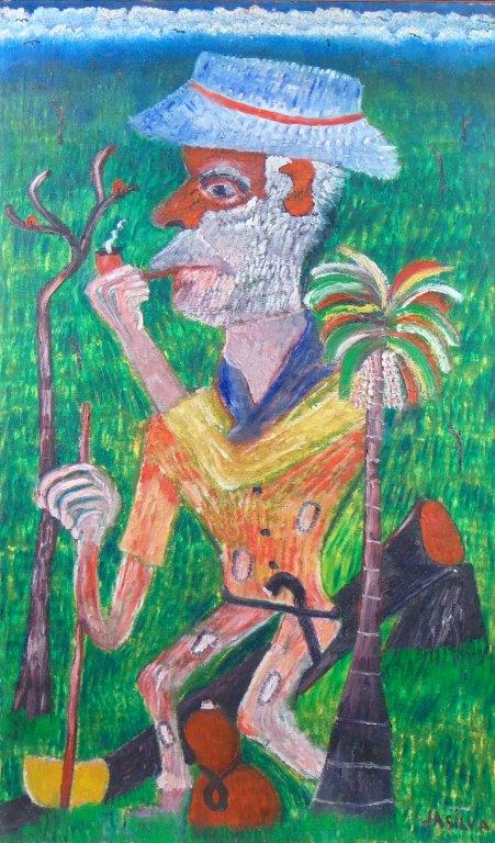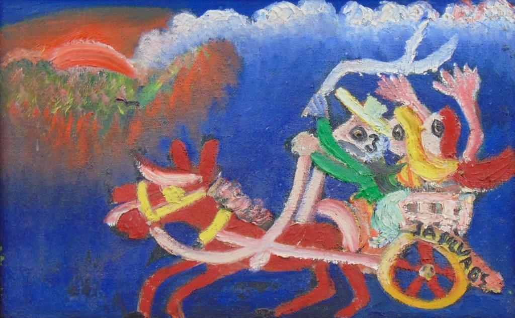 José Antônio da Silva - Maria Fumaça, 1987 - Óleo sobre tela, assinado e datado inf. direito; assinado, datado e titulado no verso. - 70 x 50 cm.
