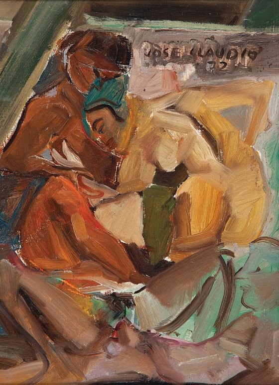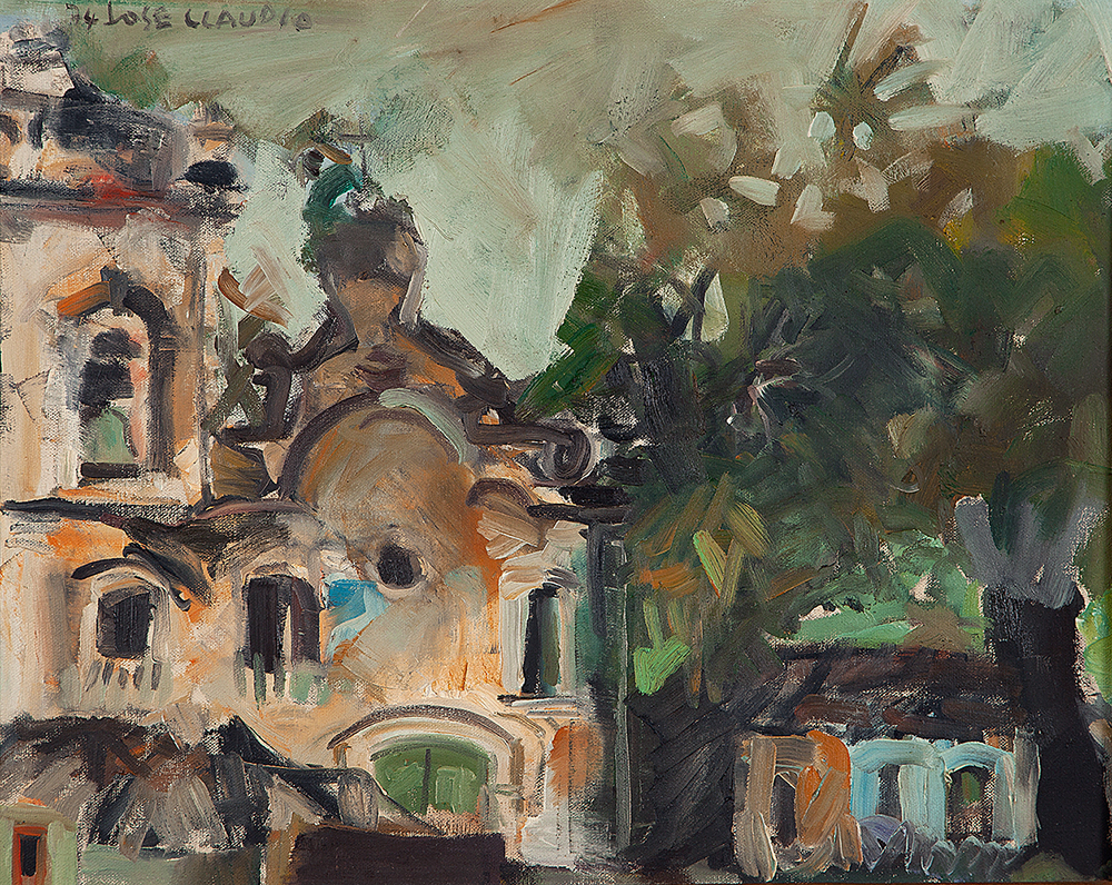 Em 1952, José Cláudio, ao lado de Abelardo da Hora (1924), Gilvan Samico (1928) e Wellington Virgolino (1929 - 1988), entre outros, funda o Ateliê Coletivo da Sociedade de Arte Moderna do Recife - SAMR. Posteriormente, em Salvador, José Cláudio é orientado por Mario Cravo Júnior (1923), Carybé (1911 - 1997) e Jenner Augusto (1924 - 2003). Viaja para São Paulo em 1955, onde inicialmente trabalha com Di Cavalcanti (1897 - 1976), estudando também gravura com Lívio Abramo (1903 - 1992) na Escola de Artesanato do Museu de Arte Moderna de São Paulo - MAM/SP. Recebe bolsa de estudos da Fundação Rotelini, em 1957, permanecendo por um ano em Roma, na Academia de Belas Artes. De volta ao Brasil, passa a residir em Olinda e escreve artigos sobre artes plásticas para o Diário da Noite, do Recife. Realiza pinturas de caráter figurativo, retratando cenas regionais e paisagens do Nordeste, evitando, porém, o caráter pitoresco. O artista escreve, ao longo de sua carreira, vários textos de apresentação para exposições de pintores nordestinos, como a mostra Oficina Pernambucana (1967). Publica, entre outros, o livro Memória do Ateliê Coletivo (1978), no qual reúne depoimentos dos vários artistas que integram o grupo.