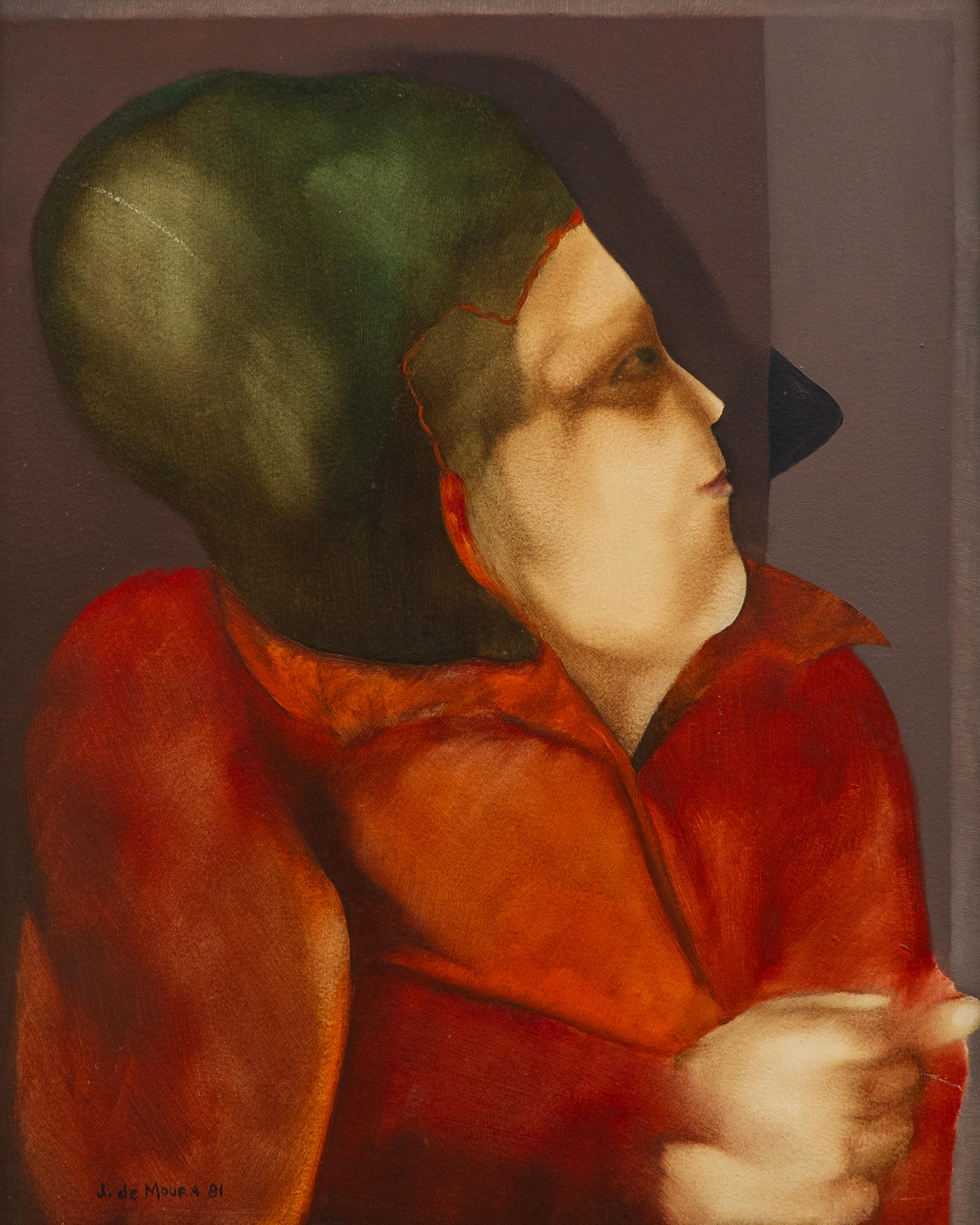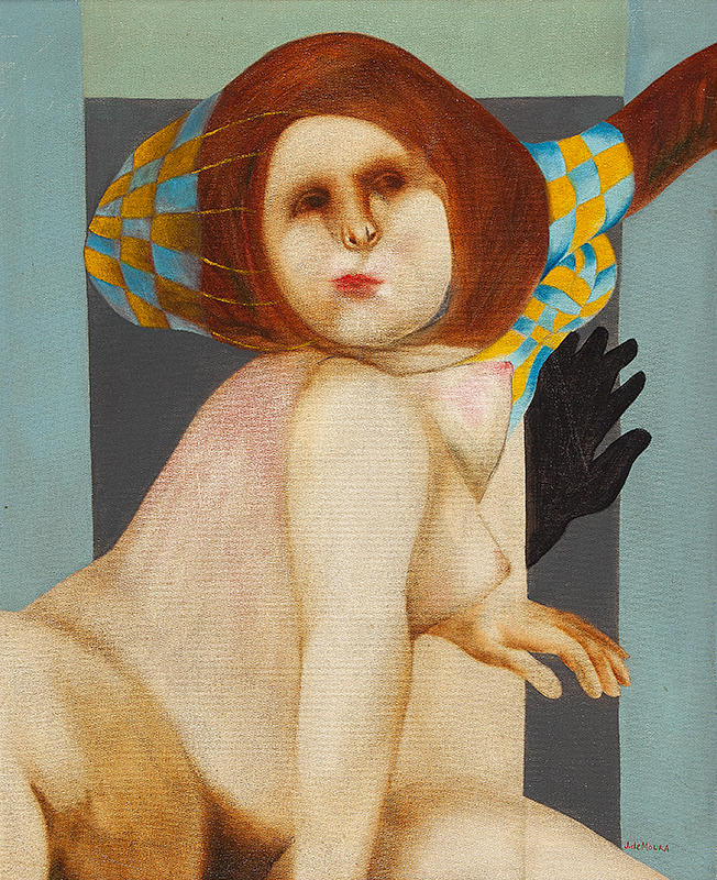 José de Moura - A sombra e o dedo, série Leva e Trás - 1981 - Óleo sobre eucatex - Assinado canto inferior esquerdo - 50 x 40 cm. Coleção Múcio Bandeira de Mello.