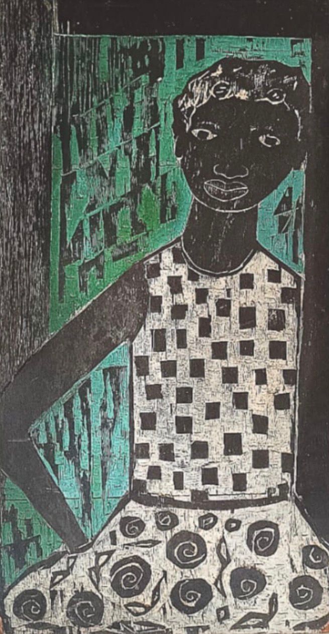Calasans Neto - Laura II - Matriz de xilogravura pintada - Medidas 60 x 30 cm - Medida Externa - 70 x 40 cm - Assinado 1956
