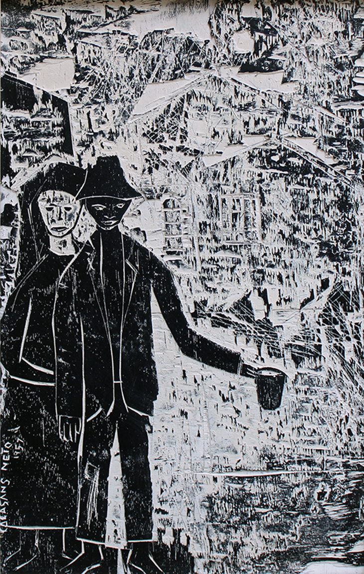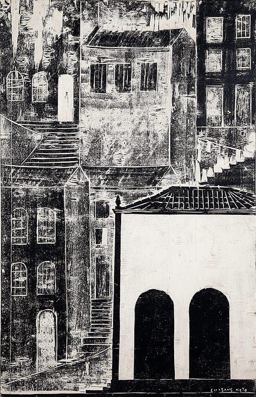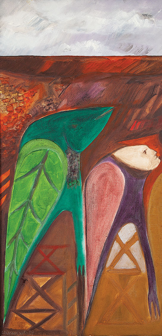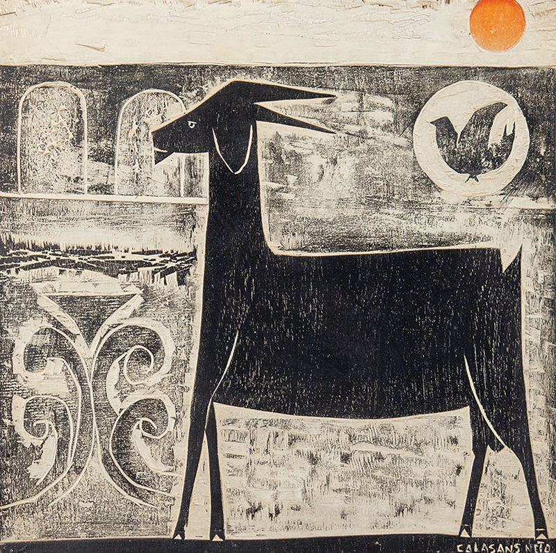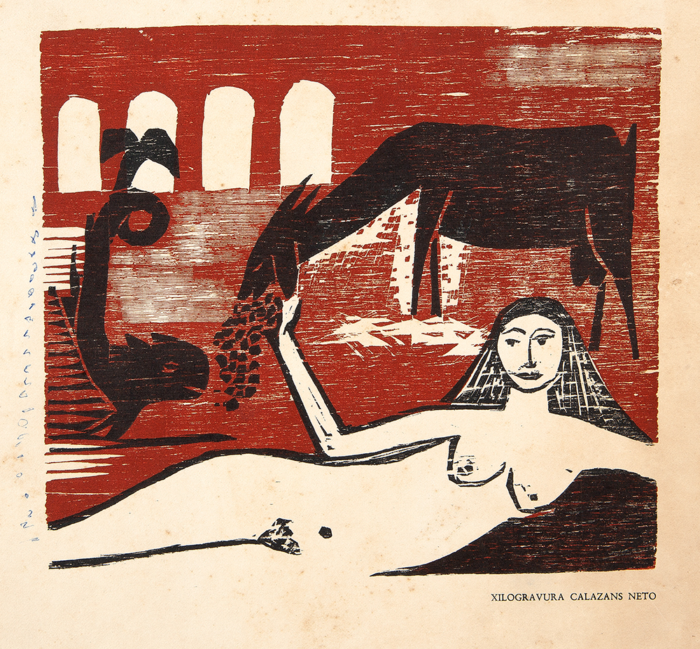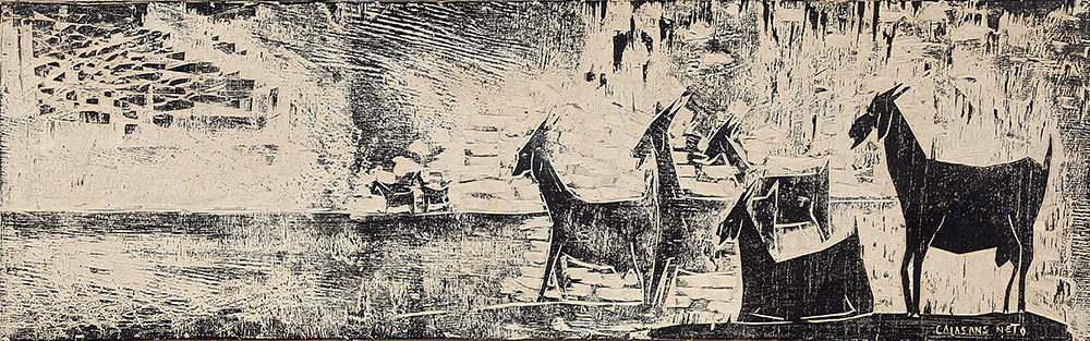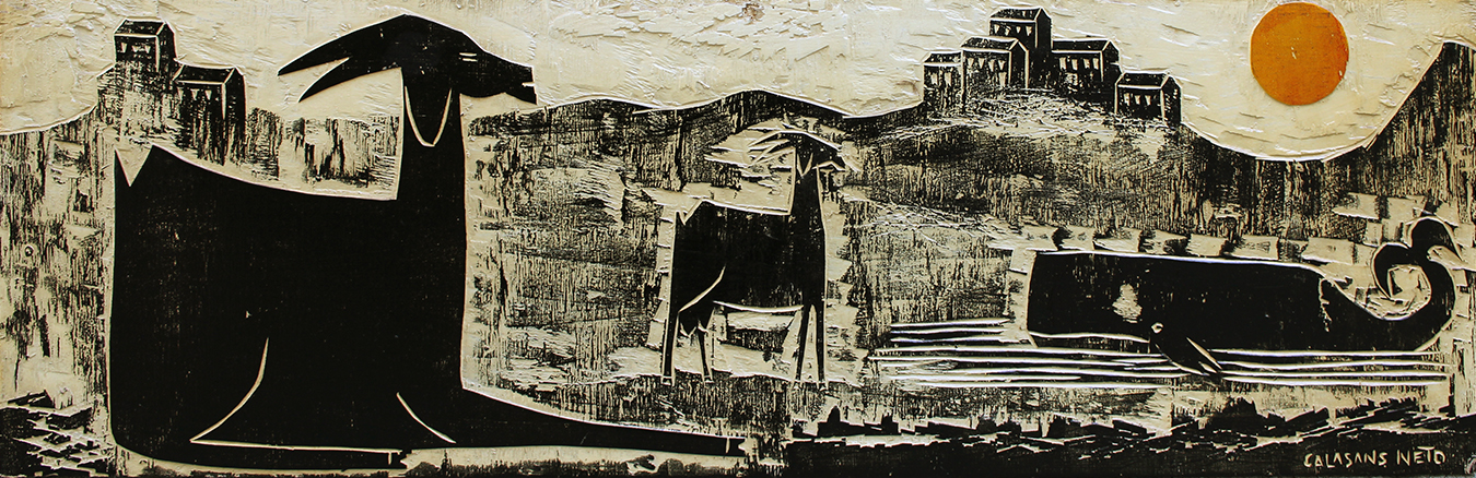 José Júlio Calasans Neto (Salvador BA 1932 - idem 2006). Pintor, gravador, ilustrador, desenhista, entalhador e cenógrafo. Estuda pintura com Genaro de Carvalho. Na Escola de Belas Artes da Universidade Federal da Bahia, UFBA, tem aulas de gravura com Mario Cravo Júnior. Em Salvador funda, com outros artistas, a Jogralesca (teatralização de poemas), a revista Mapa e a Editora Macunaíma. Especializa-se em gravura em metal e madeira e empenha-se na relação da gravura com a cultura popular e o cordel. Entre 1956 e 1965, cria cenários para produções como Deus e o Diabo na Terra do Sol, de Glauber Rocha, e Eles Não Usam Black-Tie, de Gianfrancesco Guarnieri. Ilustra romances como Tereza Batista Cansada de Guerra e Tieta do Agreste, de Jorge Amado. Nos anos 80 passa a dedicar-se também à pintura.