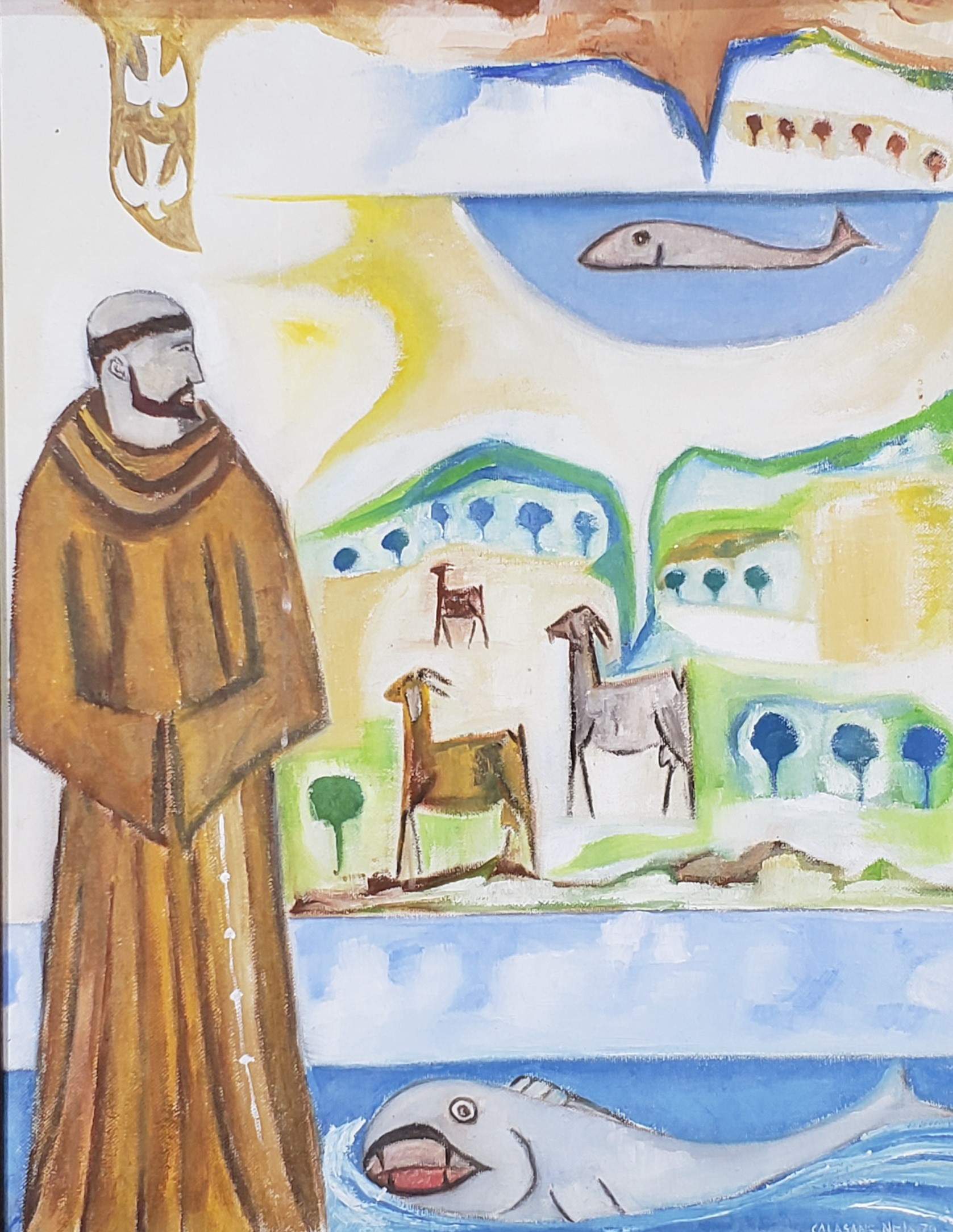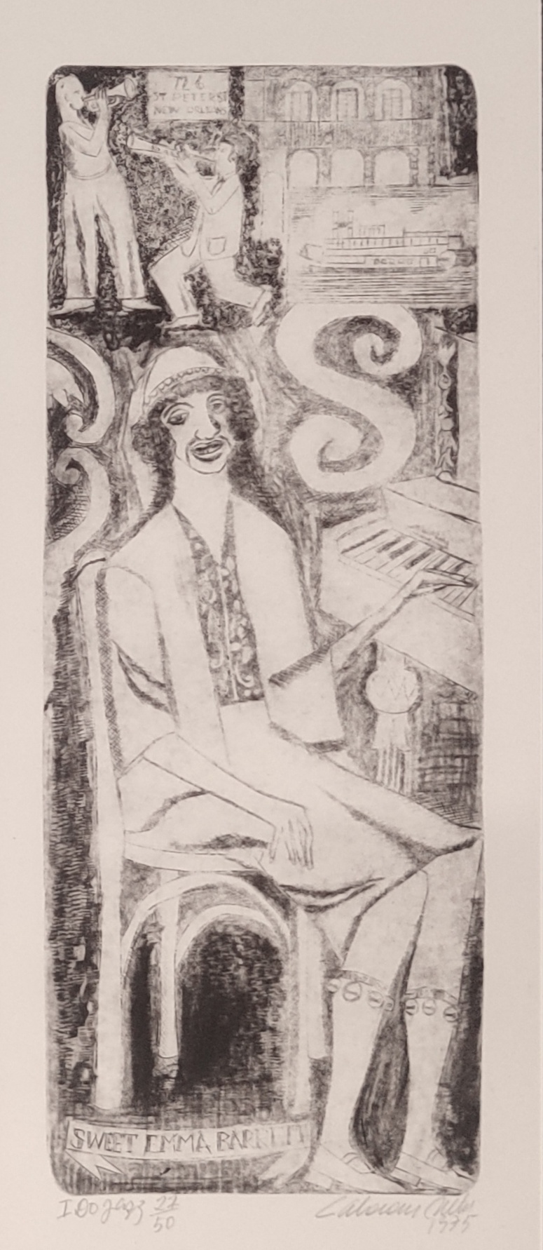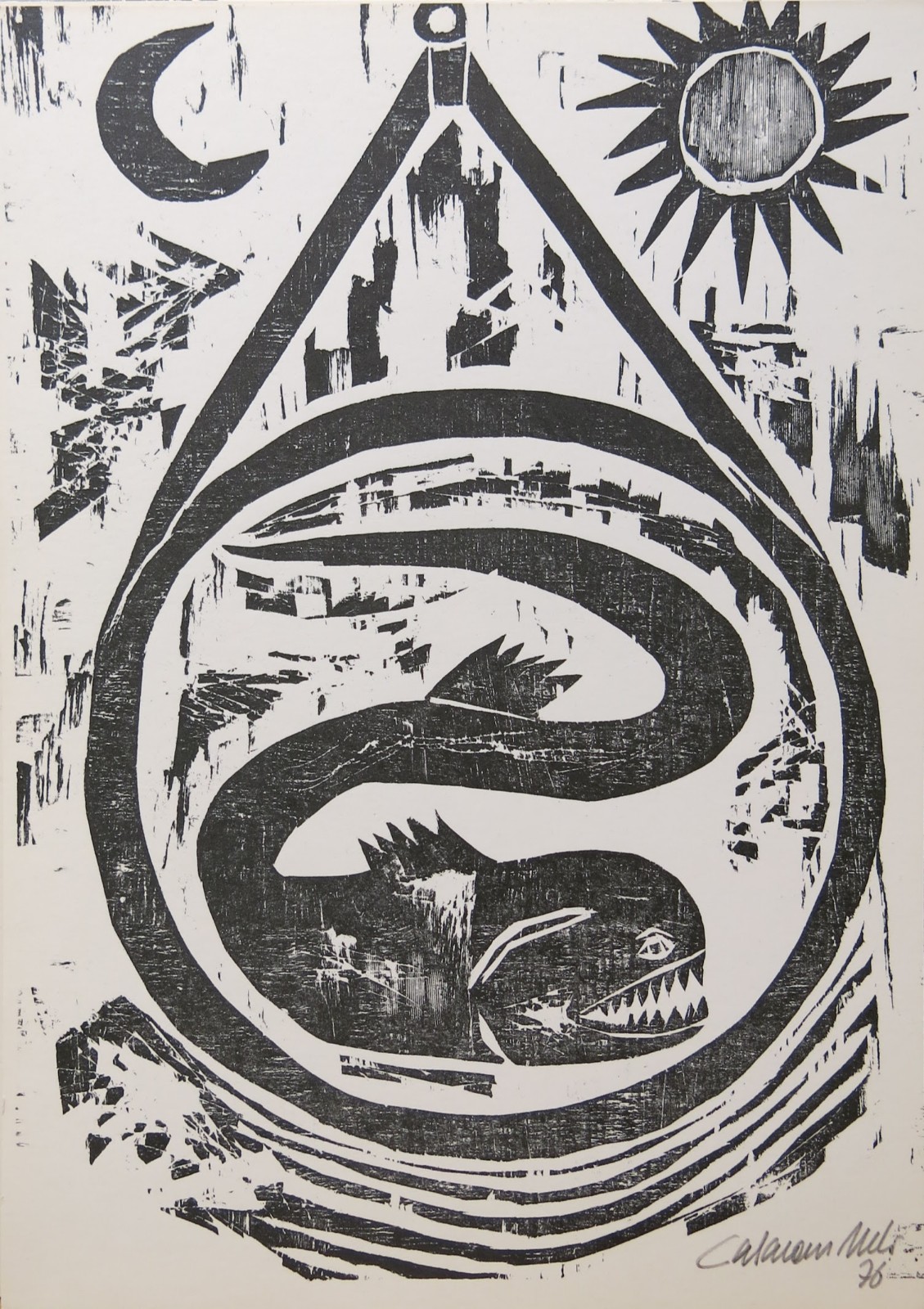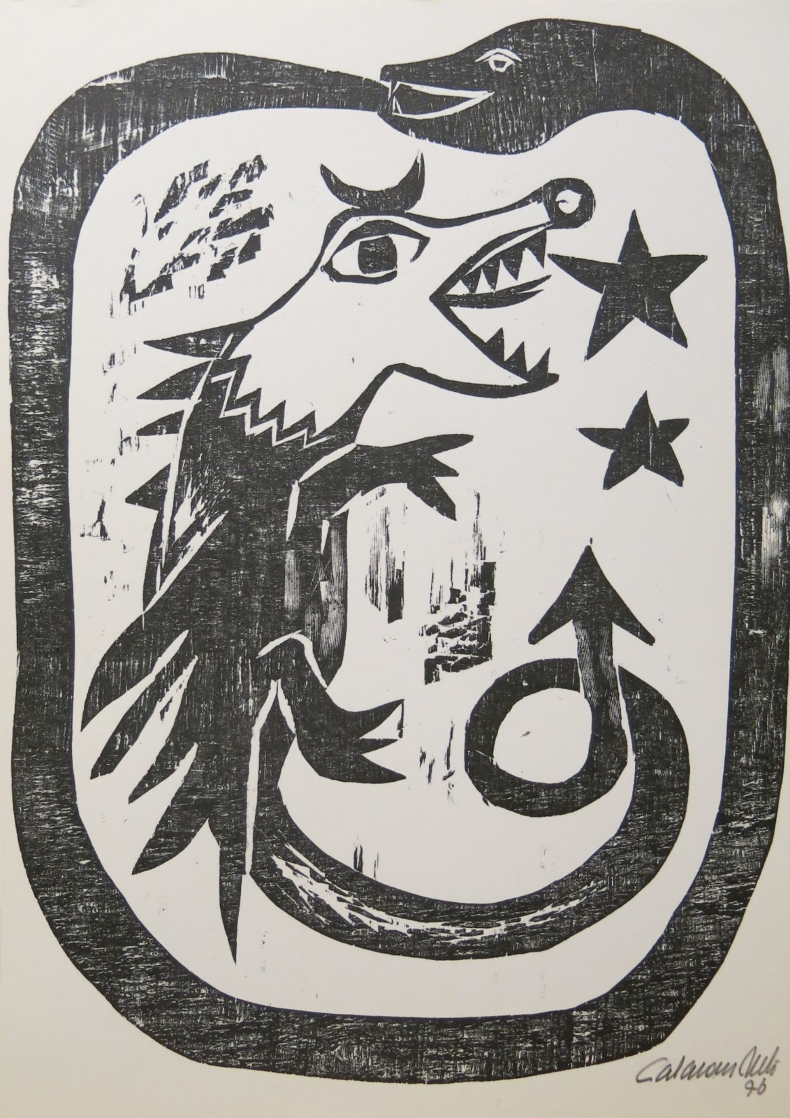 José Júlio Calasans Neto (Salvador BA 1932 - idem 2006). Pintor, gravador, ilustrador, desenhista, entalhador e cenógrafo. Estuda pintura com Genaro de Carvalho. Na Escola de Belas Artes da Universidade Federal da Bahia, UFBA, tem aulas de gravura com Mario Cravo Júnior. Em Salvador funda, com outros artistas, a Jogralesca (teatralização de poemas), a revista Mapa e a Editora Macunaíma. Especializa-se em gravura em metal e madeira e empenha-se na relação da gravura com a cultura popular e o cordel. Entre 1956 e 1965, cria cenários para produções como Deus e o Diabo na Terra do Sol, de Glauber Rocha, e Eles Não Usam Black-Tie, de Gianfrancesco Guarnieri. Ilustra romances como Tereza Batista Cansada de Guerra e Tieta do Agreste, de Jorge Amado. Nos anos 80 passa a dedicar-se também à pintura.