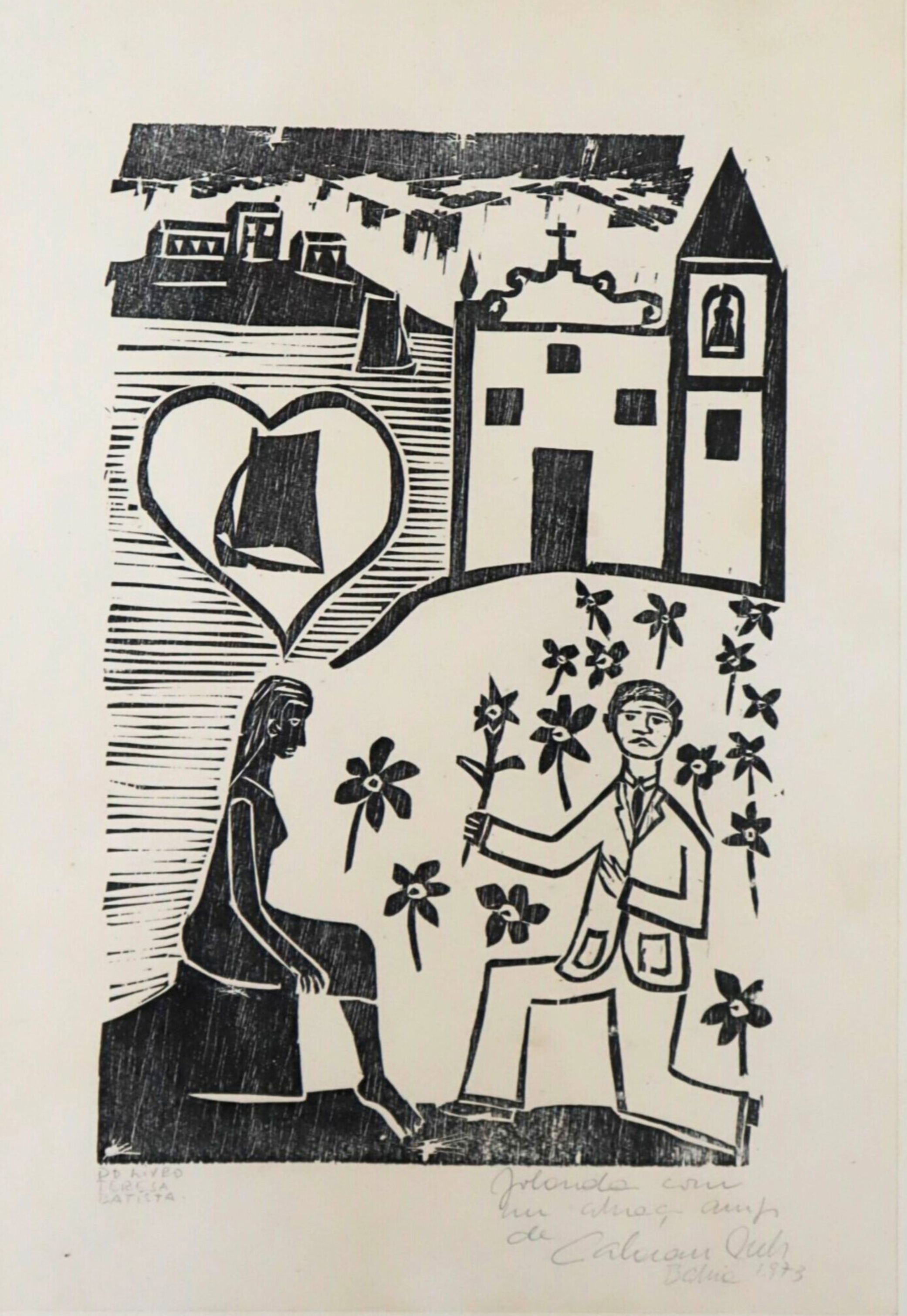 José Júlio Calasans Neto (Salvador BA 1932 - idem 2006). Pintor, gravador, ilustrador, desenhista, entalhador e cenógrafo. Estuda pintura com Genaro de Carvalho. Na Escola de Belas Artes da Universidade Federal da Bahia, UFBA, tem aulas de gravura com Mario Cravo Júnior. Em Salvador funda, com outros artistas, a Jogralesca (teatralização de poemas), a revista Mapa e a Editora Macunaíma. Especializa-se em gravura em metal e madeira e empenha-se na relação da gravura com a cultura popular e o cordel. Entre 1956 e 1965, cria cenários para produções como Deus e o Diabo na Terra do Sol, de Glauber Rocha, e Eles Não Usam Black-Tie, de Gianfrancesco Guarnieri. Ilustra romances como Tereza Batista Cansada de Guerra e Tieta do Agreste, de Jorge Amado. Nos anos 80 passa a dedicar-se também à pintura.