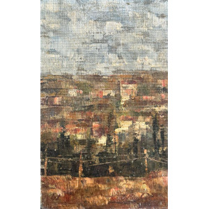 José Paulo Moreira da Fonseca - Muro e distâncias. Óleo sobre tela colada em eucatex, 45x54 cm, 1988, A.C.I.D. e V. Com moldura