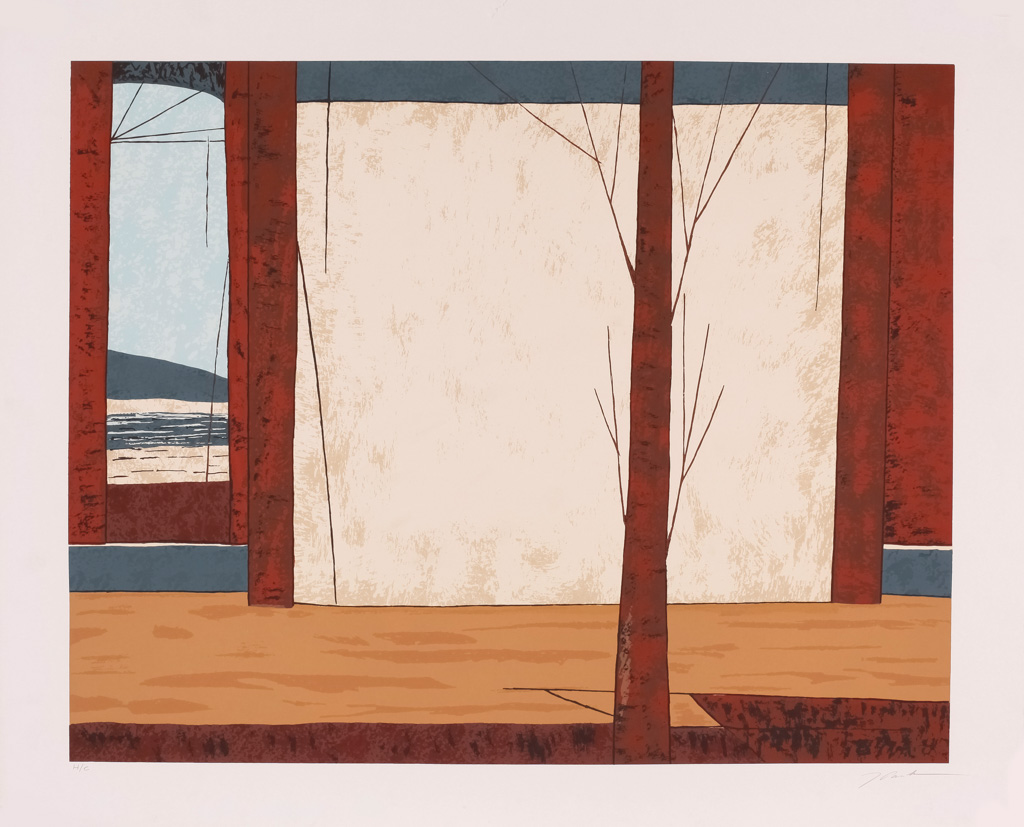 Árvore e Porta – 60 x 80 cm – Gravura sem Moldura – Ass. Canto Inferior Direito - Exemplar 63/190 - Leves rasgos nas bordas
