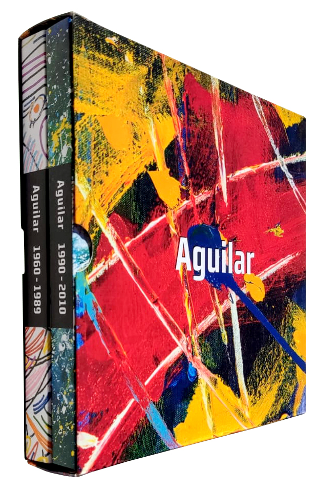 José Roberto Aguilar (São Paulo SP 1941). Pintor, videomaker, performer, escultor, escritor, músico e curador. Autodidata, integra o movimento performático-literário Kaos, em 1956, com Jorge Mautner (1941) e José Agripino de Paula (1937-2007). Em 1963, expõe pinturas na 7ª Bienal Internacional de São Paulo. Considerado um dos pioneiros da nova figuração no Brasil, participa da mostra Opinião 65, no Museu de Arte Moderna do Rio de Janeiro (MAM/RJ), em 1965. Nessa época, passa a pintar com spray e pistola de ar comprimido. Vive em Londres, entre 1969 e 1972, e em Nova York, entre 1974 e 1975, época em que inicia suas experimentações com vídeo. Volta a morar em São Paulo em 1976. No ano seguinte, participa da 14ª Bienal Internacional de São Paulo com a instalação Circo Antropofágico Ambulante Cósmico e Latino-Americano Apresenta Esta Noite: A Transformação Permanente do Tabu em Totem, em que expõe 12 monitores de TV no palco do Teatro Ruth Escobar. Em 1981, cria o grupo musical Banda Performática e lança o livro A Divina Comédia Brasileira. Torna-se discípulo do líder espiritual indiano Rajneesh, em 1983, e começa a assinar suas telas como Aguilar Vigyan. Em 1989, realiza a performance Tomada da Bastilha, com a participação de 300 artistas, assistida por cerca de 10 mil pessoas em São Paulo. Nos anos 1990, faz pinturas em telas gigantes e esculturas em vidro e cerâmica. De 1995 a 2002, é diretor do espaço cultural Casa das Rosas, em São Paulo. Em 2003, Aguilar é nomeado representante do Ministério da Cultura na capital paulista.
