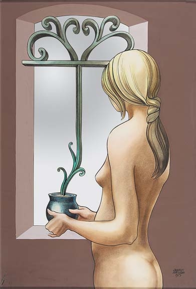 JUAREZ MACHADO DESENHO ORIGINAL EM GUACHE E NANQUIM. INSCRIÇÃO: "DESENHO DA SERIE PAPEL DE CARTA- RIO ANOS 70" MED: 31 X 24 CM.