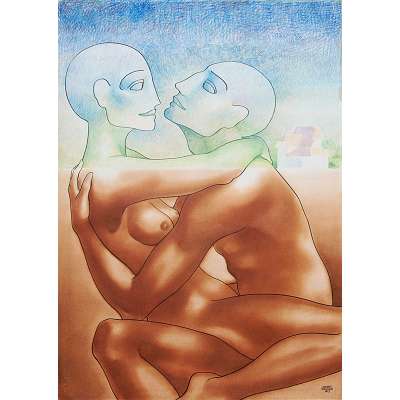 JUAREZ MACHADO, Casal - serigrafia 42/100 - 70x50 cm - Ass. inf. dir. (Com moldura em acrílico)