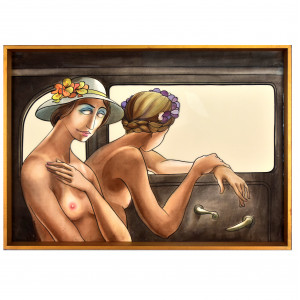 Juarez Machado - O artista e as musas no seu atelier em Paris – 55 x 73,5 cm – Serigrafia P.A (Prova do artista) - Assinatura canto inferior direito