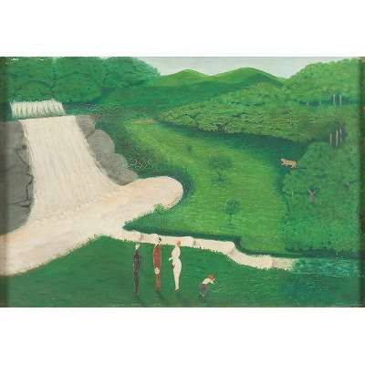 Júlio Martins da Silva - “Família observando os navios” - Óleo Sobre Cartão - Ass.inf.esq. - 60 x 39 cm.