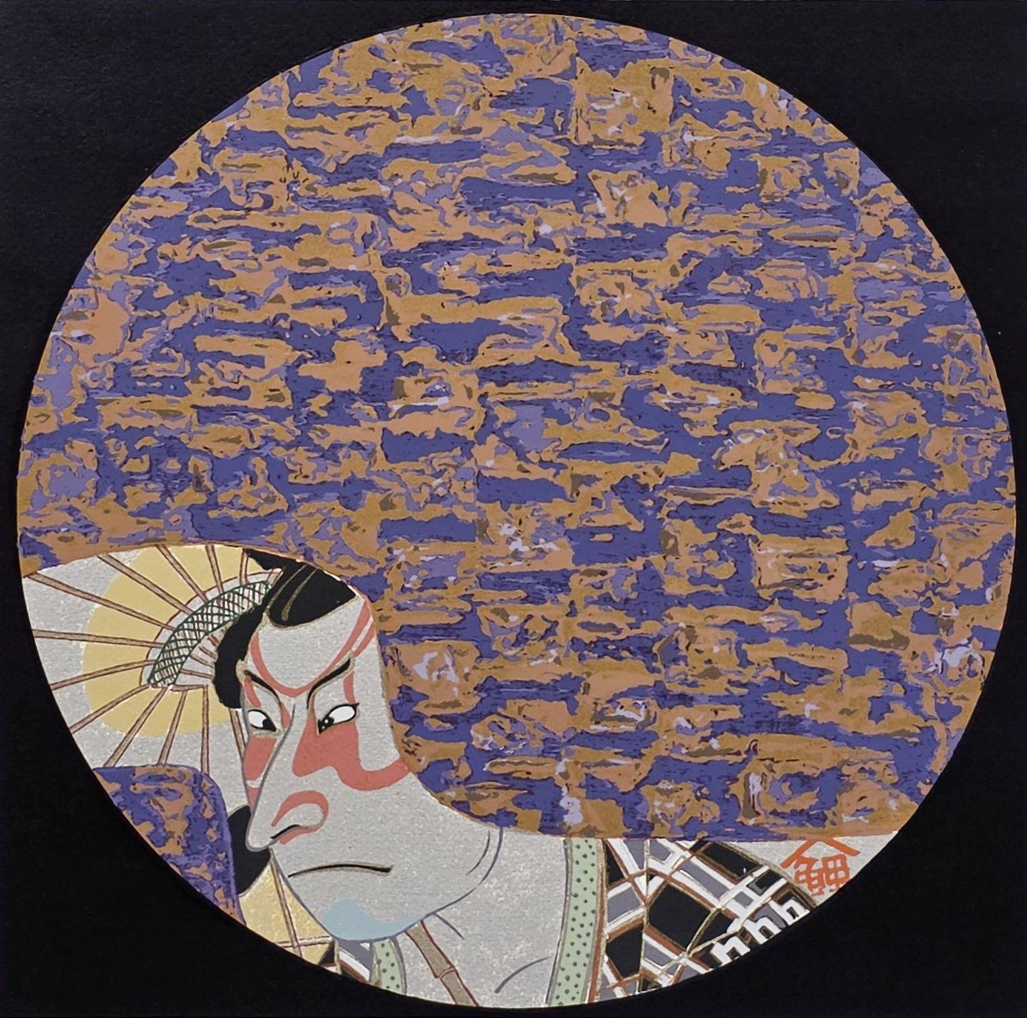 Kazuo Wakabayashi - Temari roxo com kabuki - P.E. VIII-IX. Serigrafia, 61x44 cm, 1989, A.C.D. a lápis. Sem moldura