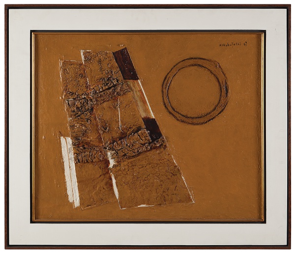 Kazuo Wakabayashi - Sem título. Acrílica e cola sobre tela, 73x73 cm, 1970, A.C.S.D. Com moldura