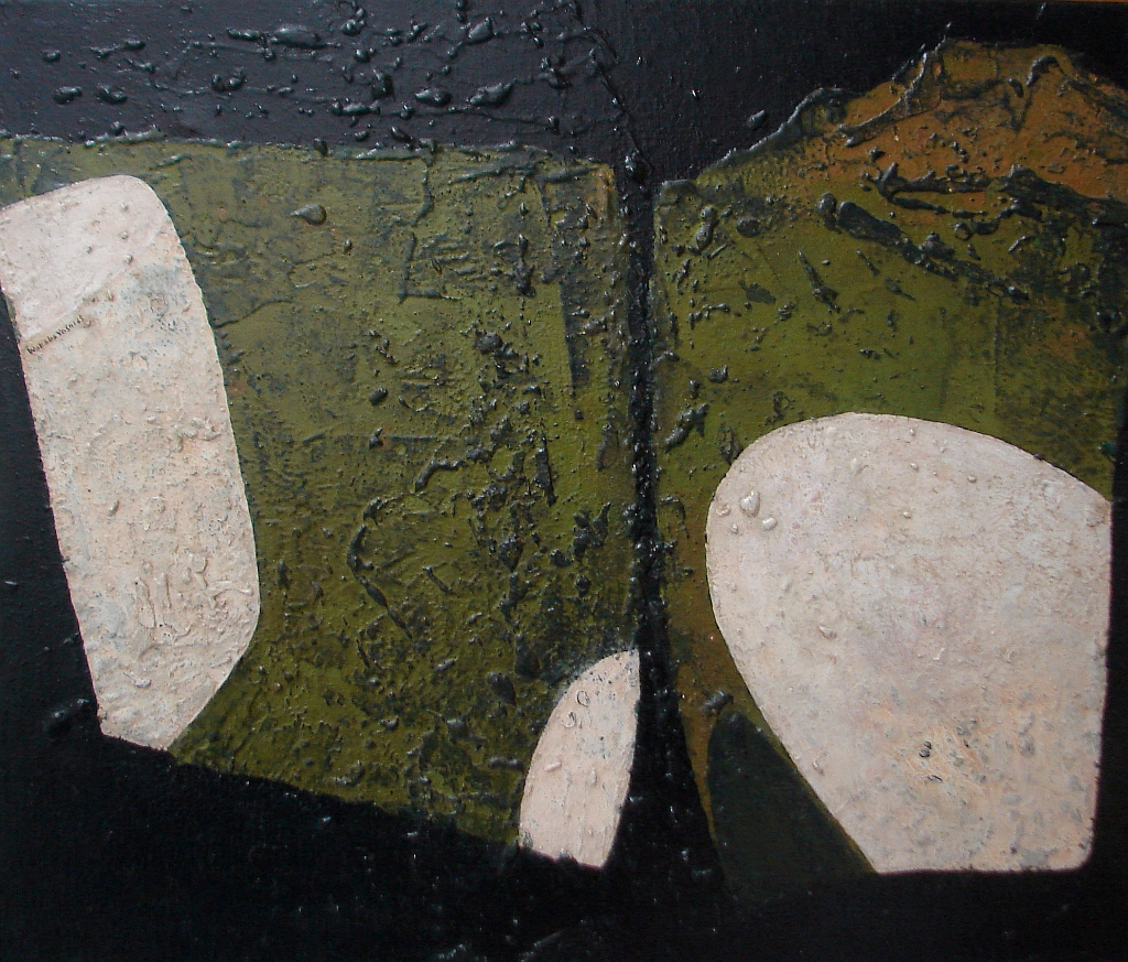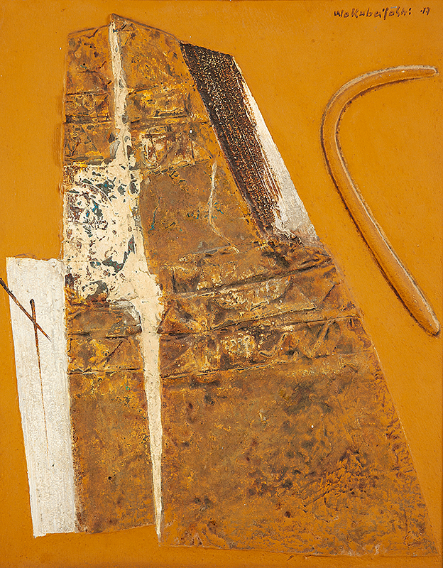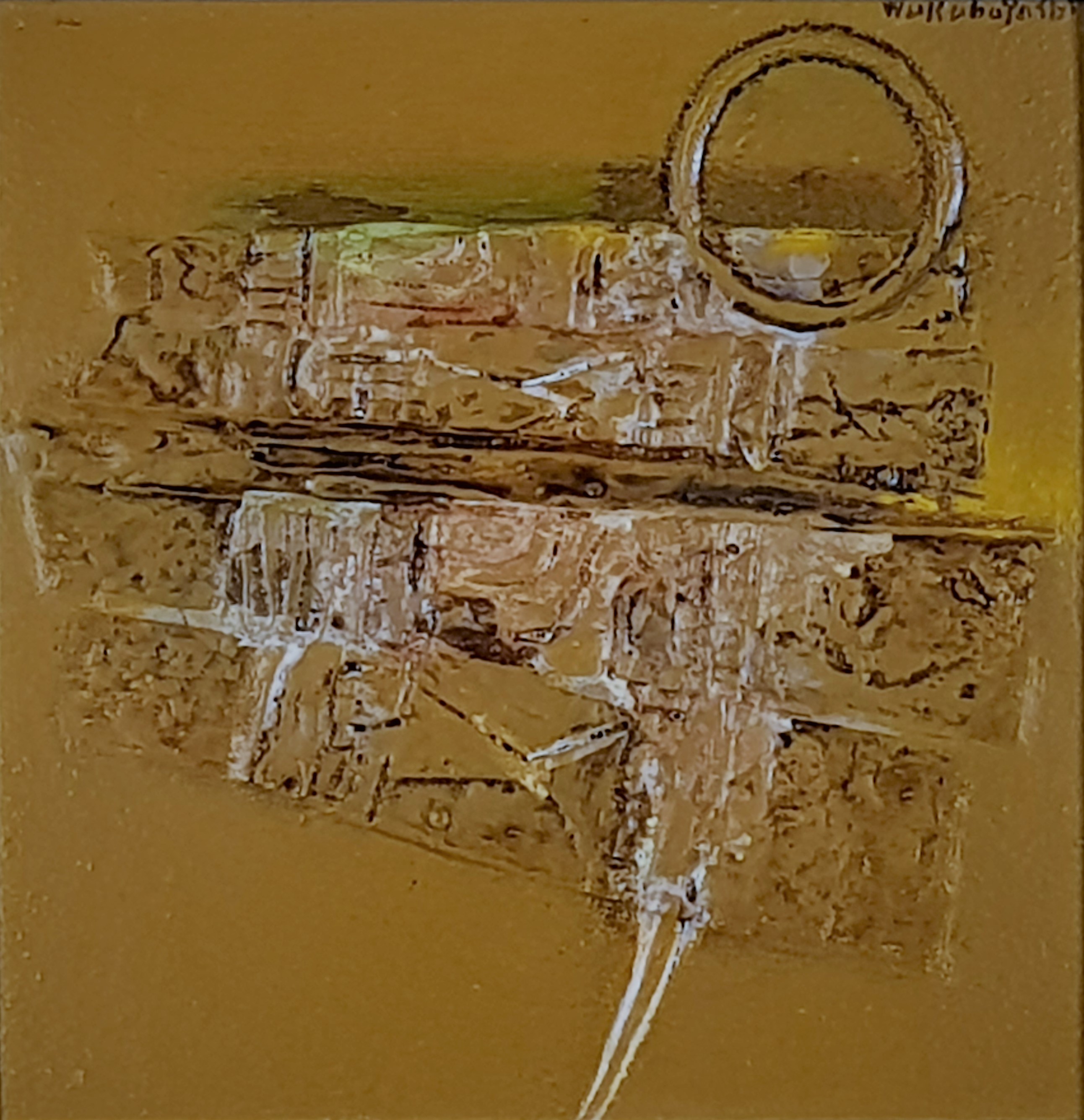 Kazuo Wakabayashi - Sem título. Acrílica e cola sobre eucatex, 16x22 cm, déc. 70, A.C.S.D. Com moldura
