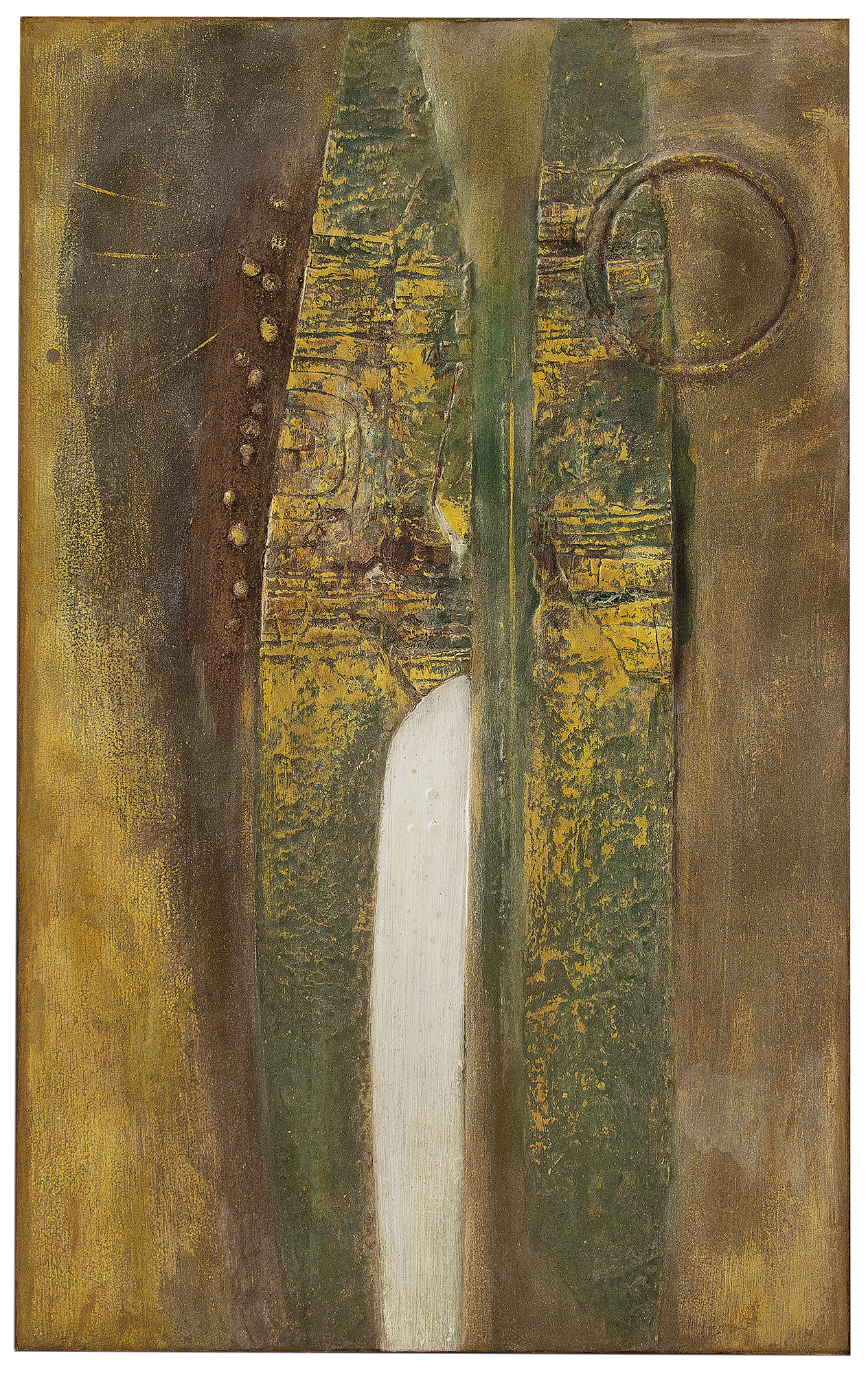 Kasuo Wakabayashi - Óleo com massa em relevo sobre tela. - Assinado e datado 1964 superior direito. - 115 x 75 cm.