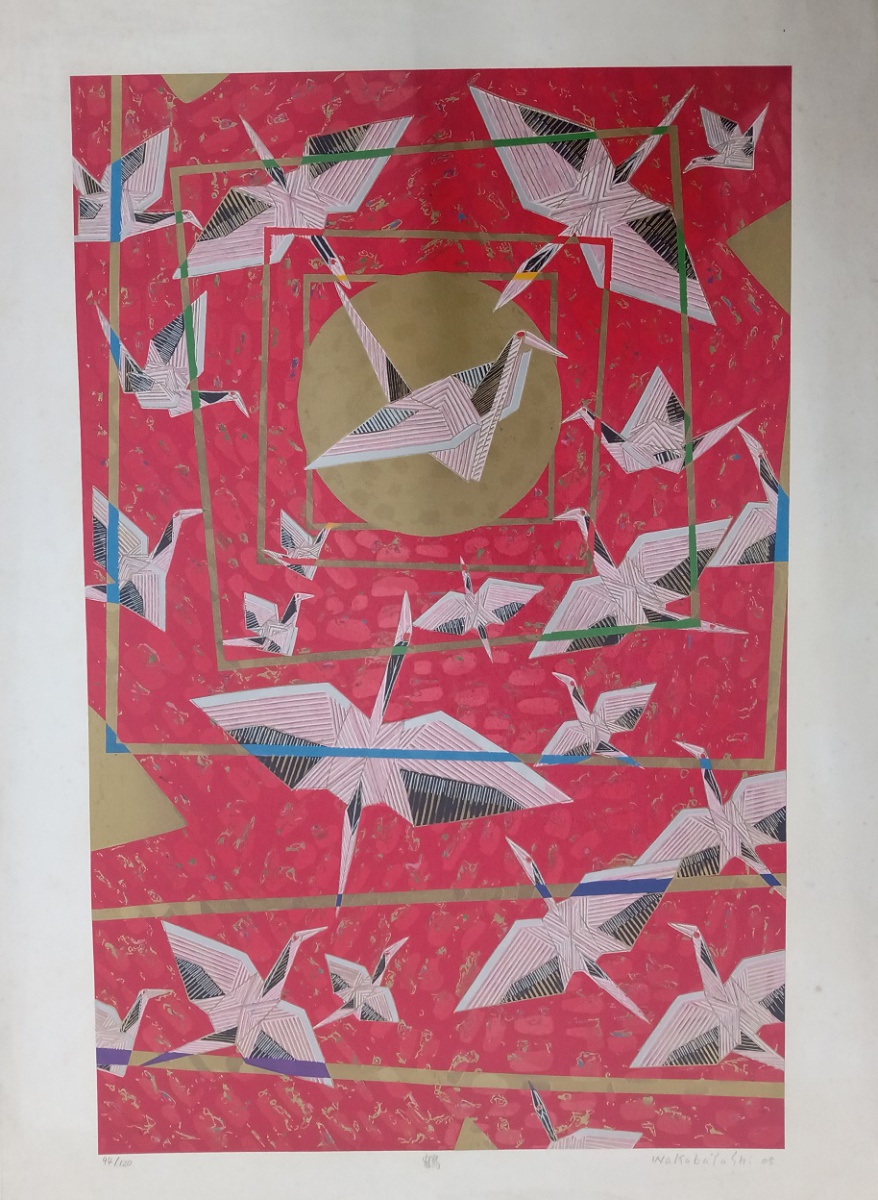 Kazuo Wakabayashi - Abstrato em verde com pássaros - Óleo sobre tela - 45 alt x 45 larg - acsd