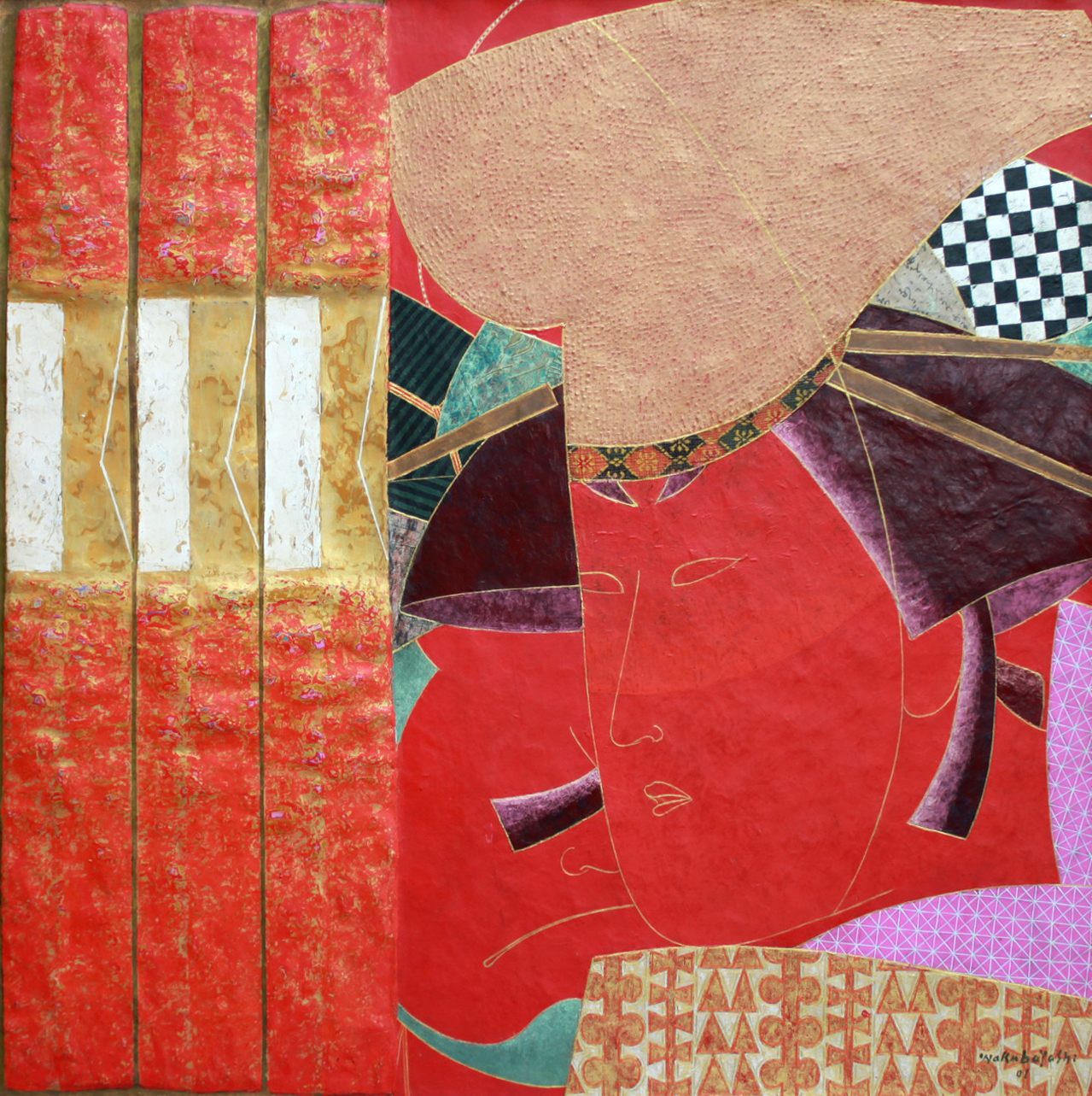 Kazuo Wakabayashi - Sem título. Acrílica e cola sobre tela, 73x73 cm, 1970, A.C.S.D. Com moldura