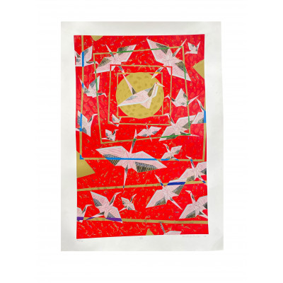 Wakabayashi - Composição - Medidas 80 x 60 cm - Gravura Sem Moldura - Assinado no Canto Inferior Direito e Datado 2016 - Exemplar 96/100 - Apresenta pequenos amassados nas bordas