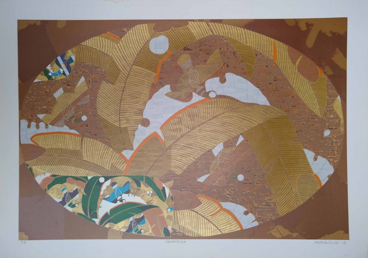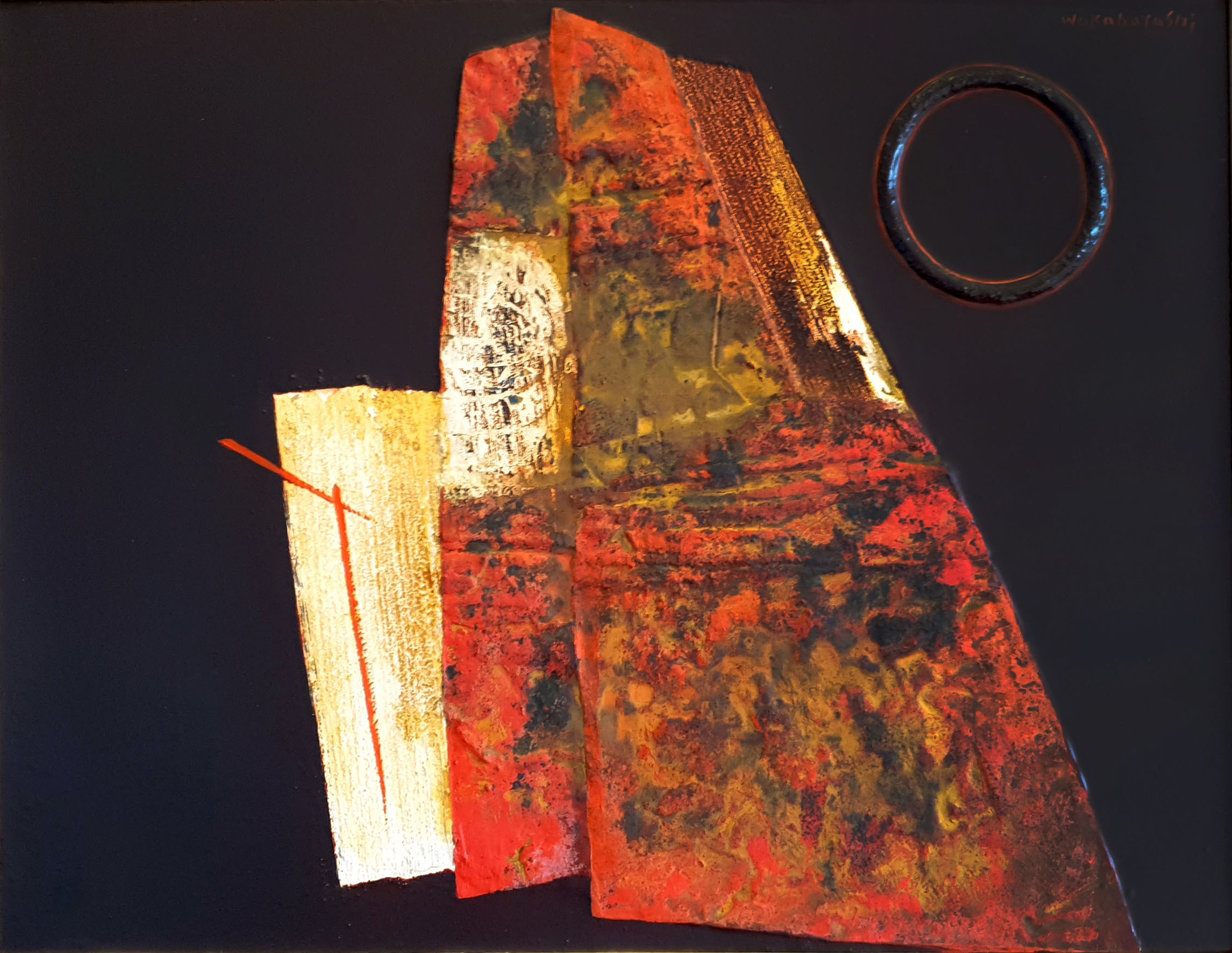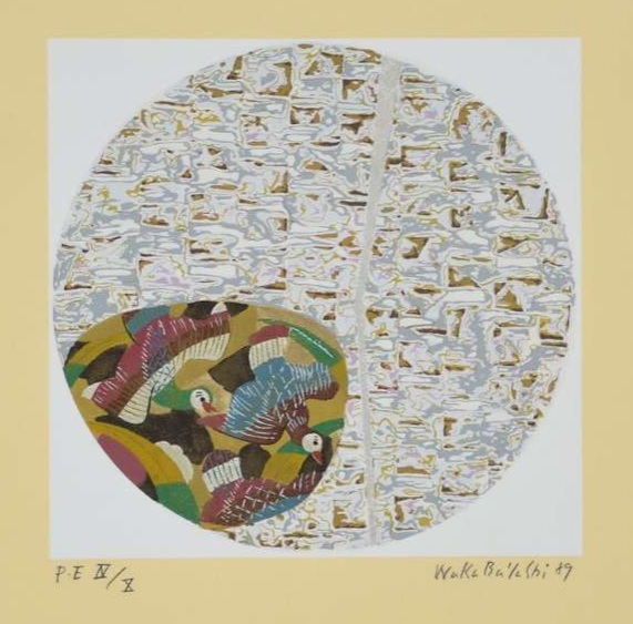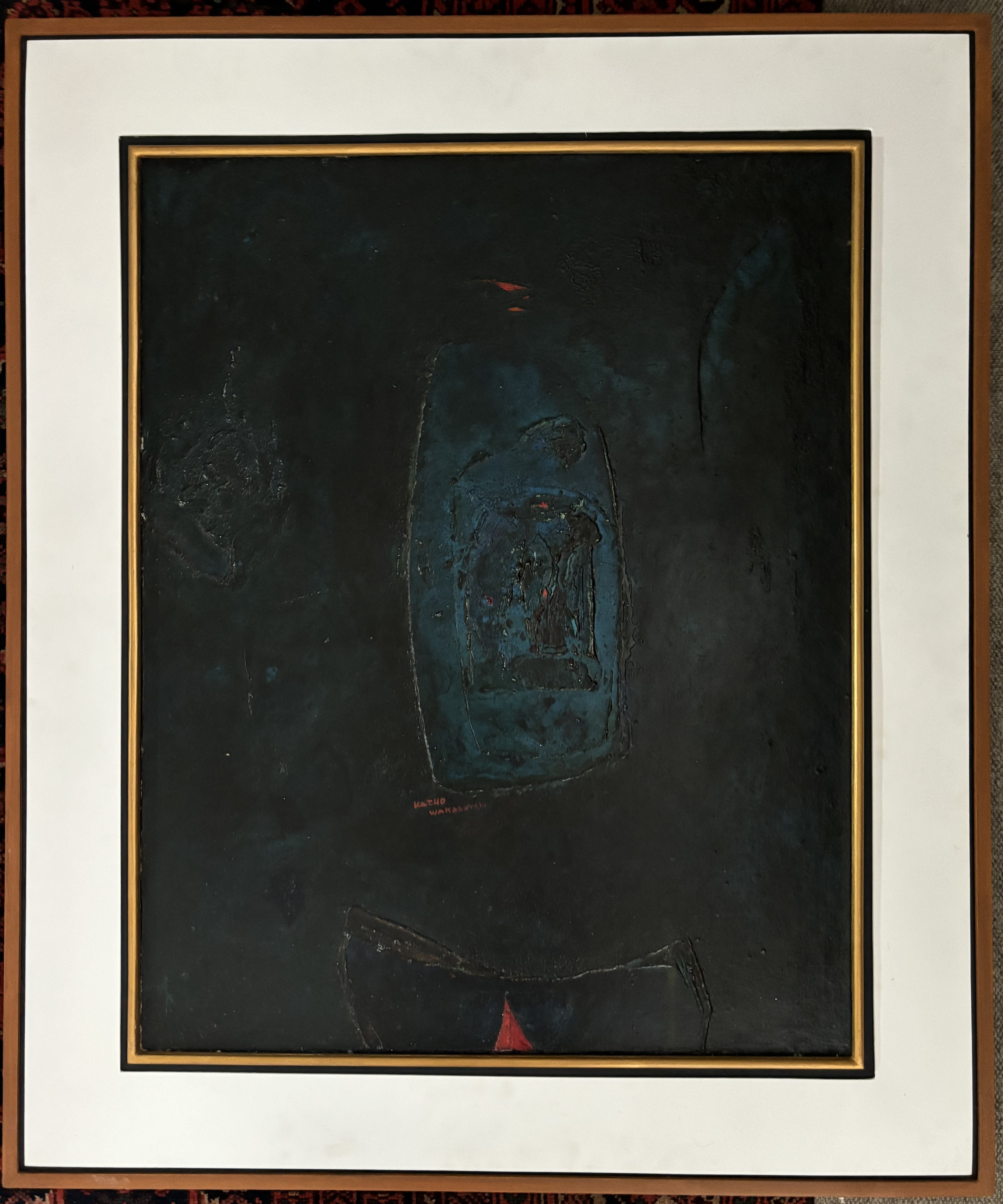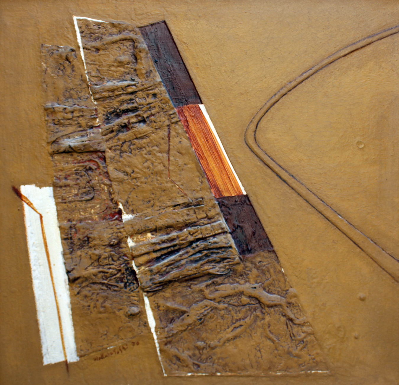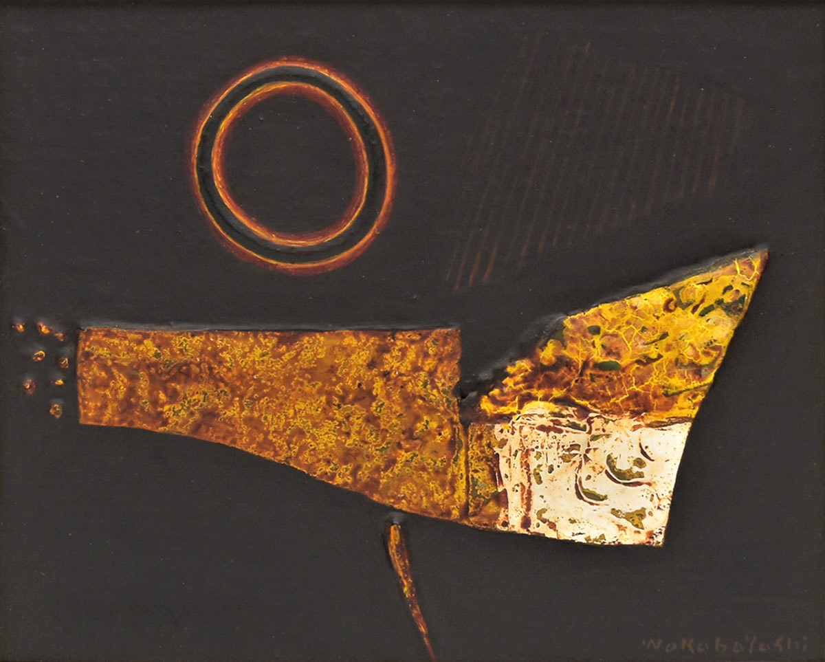 Kazuo Wakabayashi - Sem título. Acrílica e cola sobre eucatex, 16x22 cm, déc. 70, A.C.S.D. Com moldura